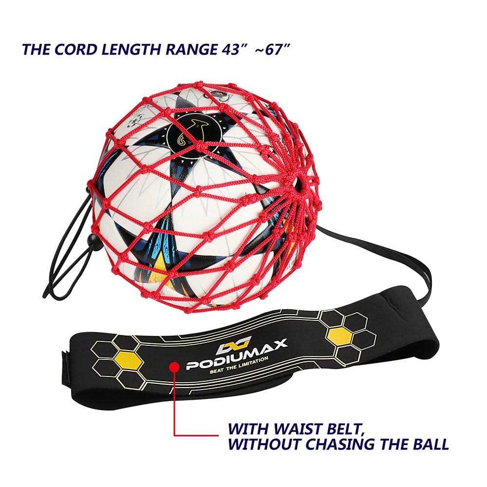 PodiuMax Hands-Free Soccer Kick/Throw Trainer, New Ball Locked Net Design, Adjustable Waist Belt & Cord Suit for All Levels (Fits Ball Size 3, 4, 5)