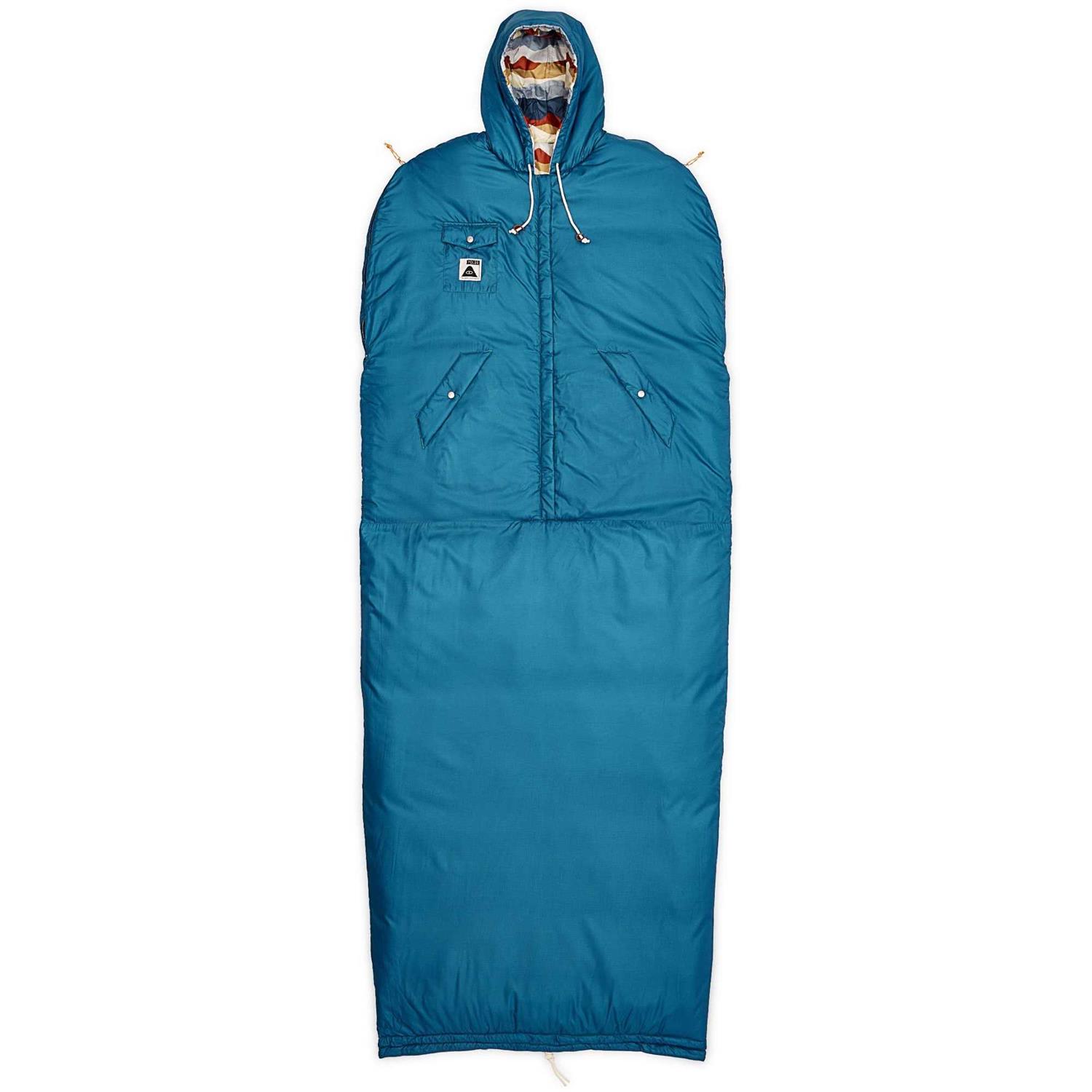 The Napsack is the best camping invention since the s’more. It’s fully convertible with zippers at the shoulders, so you can stick your arms out, and a cinch at the bottom, so that you can open it up and stick your legs out. Hike it up to your waist, cinch it, and wear it like a puffy coat around the campfire, and then crawl right back into your tent without ever having to leave the warmth of your sleeping bag. Perfect for summer trips, couch surfing, music festivals, jumping into after snowboarding, surfing or any other activity that brings your core temp down. It’s not too hot for inside and is awesome for wearing around the house in the winter.