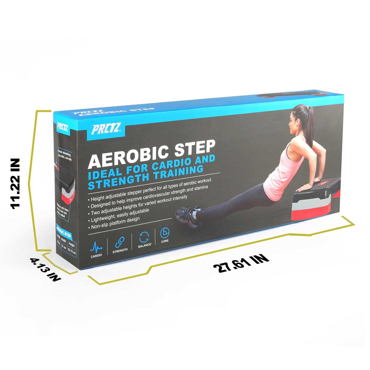 The PRCTZ Essential Aerobic Stepper is a compact and versatile piece of equipment designed to enhance your cardio workout. With a platform measuring 26.8 inch x 10.08 inch, the stepper is large enough to provide a stable surface for a variety of exercises, while still being small enough to easily fit into any home gym or workout space. The adjustable risers allow you to change the height of the stepper, accommodating users of all fitness levels. The stackable steppers can be adjusted from 4-inch height to 6-inch for versatile use with a 300 lb weight capacity. The durable construction is built to withstand heavy use, making it an ideal choice for any adult, male or female, in all shapes and sizes.