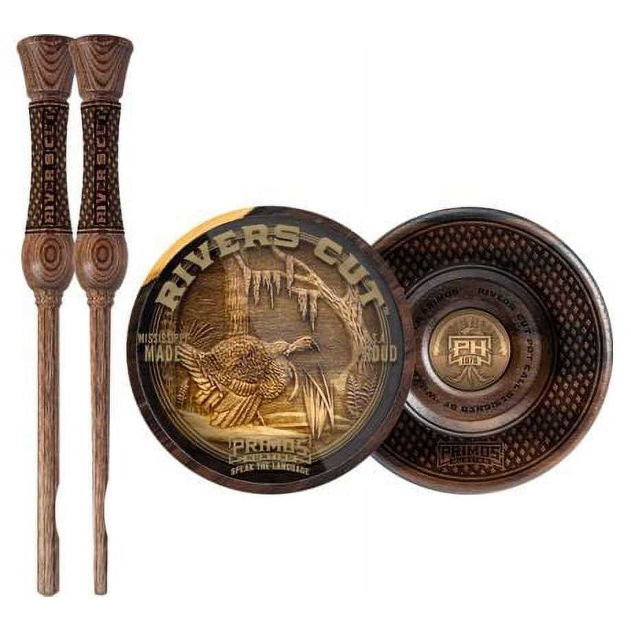 Conceived from an unending desire to outwit. Designed by master call makers. Proven on the wild turkey. Primos brings to you the Rivers Cut Pot Call. Crafted from the most exotic woods, detailed with intricate engraving, and finished with a premium glass surface, the Rivers Cut finds its home in the woods or on the mantle. Originally designed for Wilbur Rivers Primos, The Rivers Cut proudly bears his name, and creates a sound only carefully selected hardwoods can produce. Tailor-made specifically for the River’s Cut Pot, come two strikers, each chosen to create a distinct tone. Both strikers hold a cut knurled guide made for the perfect finger placement while calling. Due to the rarity of these exotic woods, the River’s Cut Pot Call will only be available for a limited time.