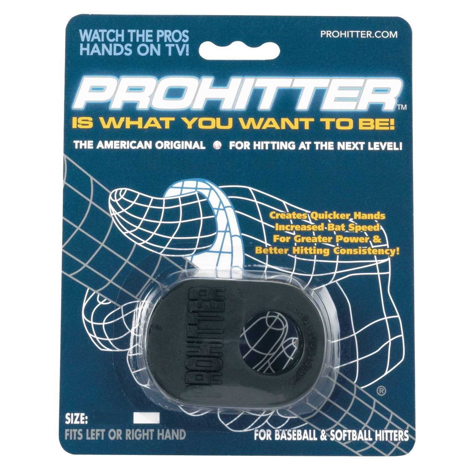 Maximize the Proper Grip Technique with the Patented Batting Aid Used by the Top Pros. ProHitter is a durable, rubber-like resin which, when worn correctly on the thumb of the top hand holding the bat, creates the correct grip technique to increase bat speed, power, and control. It also prevents a batter from getting stung or bone bruises when a batter gets jammed with an inside pitch. A large percentage of baseballs best pro players are using Prohitter to help increase their hitting performance. For baseball and softball, with or without a batting glove, with wood or aluminum bats. Fits both right and left handed players.