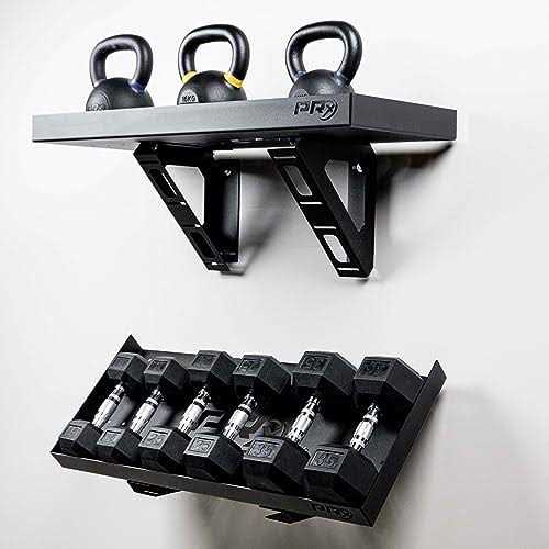 You can either have it flat or included. This option allow you the ability to design your home gym how you want it. The wholes you see on the flat top are there to make sure you can mount to any wall studs that are between 8″-30″ apart. Multi-Purpose Gym Shelf: Whether you’ve got a spread of random dumbbells or a full-blown set – they deserve to have a space-saving place of their own. So go ahead – store your dumbbells, kettlebells or medicine balls. Also great to store knee sleeves, wrist wraps, lifting shoes, a speaker, or any home gym item you need off the floor. Built Strong: 1,000lb weight capacity allows you to store your gear with confidence. Using 12 gauge steel and powder coat this storage will hold anything you put on it and last a lifetime. Trust The Brand: PRx Performance is a high quality brand in the fitness industry.