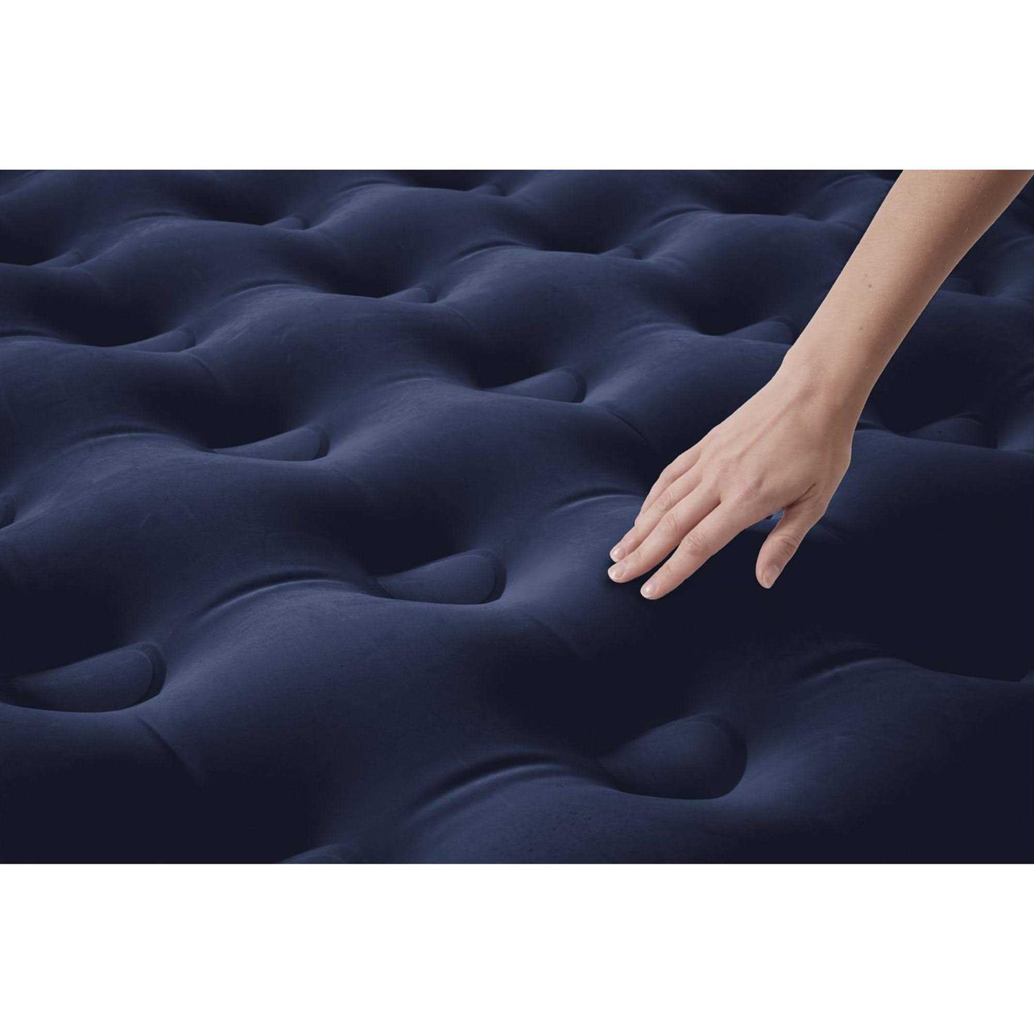 SPECS: Weight capacity: 661 lbs. Bed Weight: 7.77 lbs. Dimensions: 59.84 x 8.66 x 79.92 in. DETAILS & DESIGN: Comfortable queen airbed. Flocked sleeping surface increases comfort for a restful night’s sleep. Sturdy coil beam construction provides contoured support. Quick release valve compatible with most pumps. Vinyl sides and bottom provide versatile indoor or outdoor capabilities. Internal looped support imitated traditional mattress feel. INCLUDES: 1 Airbed 1 repair patch.
