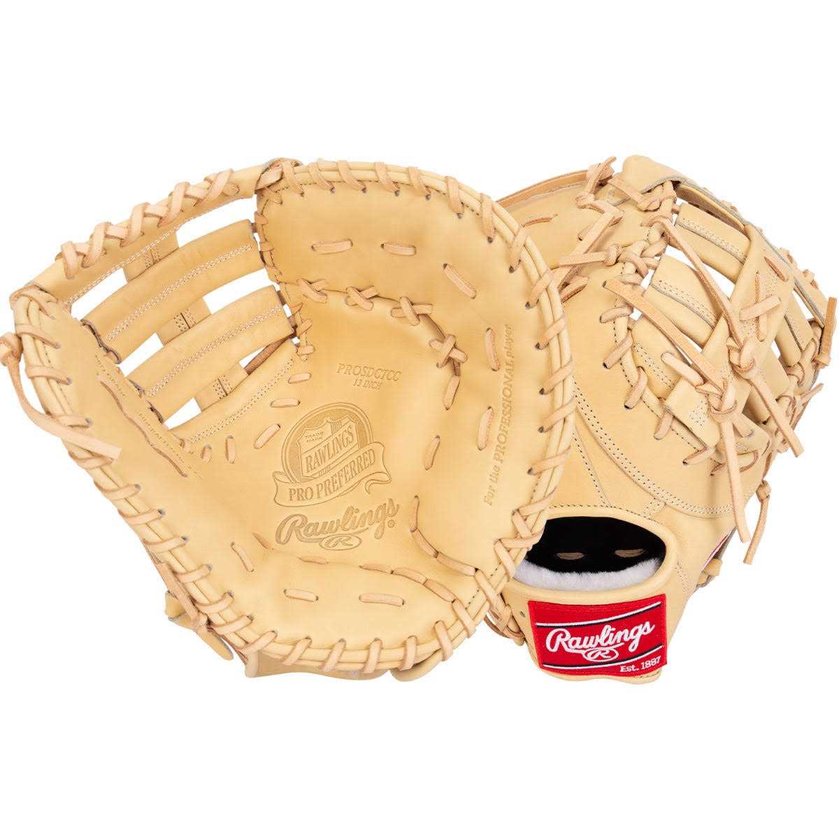 The 2021 Pro Preferred 13-inch first base mitt was crafted from flawless, full-grain kip leather. This luxurious leather is known for its supple look, and unparalleled quality and feel. This first base glove was designed for elite first basemen who want to take their game to the next level. Our DCT pattern offers a huge, deep pocket making it a popular choice for many of the best who to play the position. Its camel design also offers a clean, classic look preferred by some of today’s top pros and many elite youth players as well. In addition, this Pro Preferred mitt features Pittards sheepskin palm lining, which offers an unmatched feel for superior comfort. When you put it on, you won’t want to take it off. For even more added comfort, its wool wrist strap gives you a soft feel on the back of your hand too. Its wool padding also allows you to break in and form your perfect pocket. As a result, you’ll have the best, most high-performance mitt in a classic look teammates will envy.