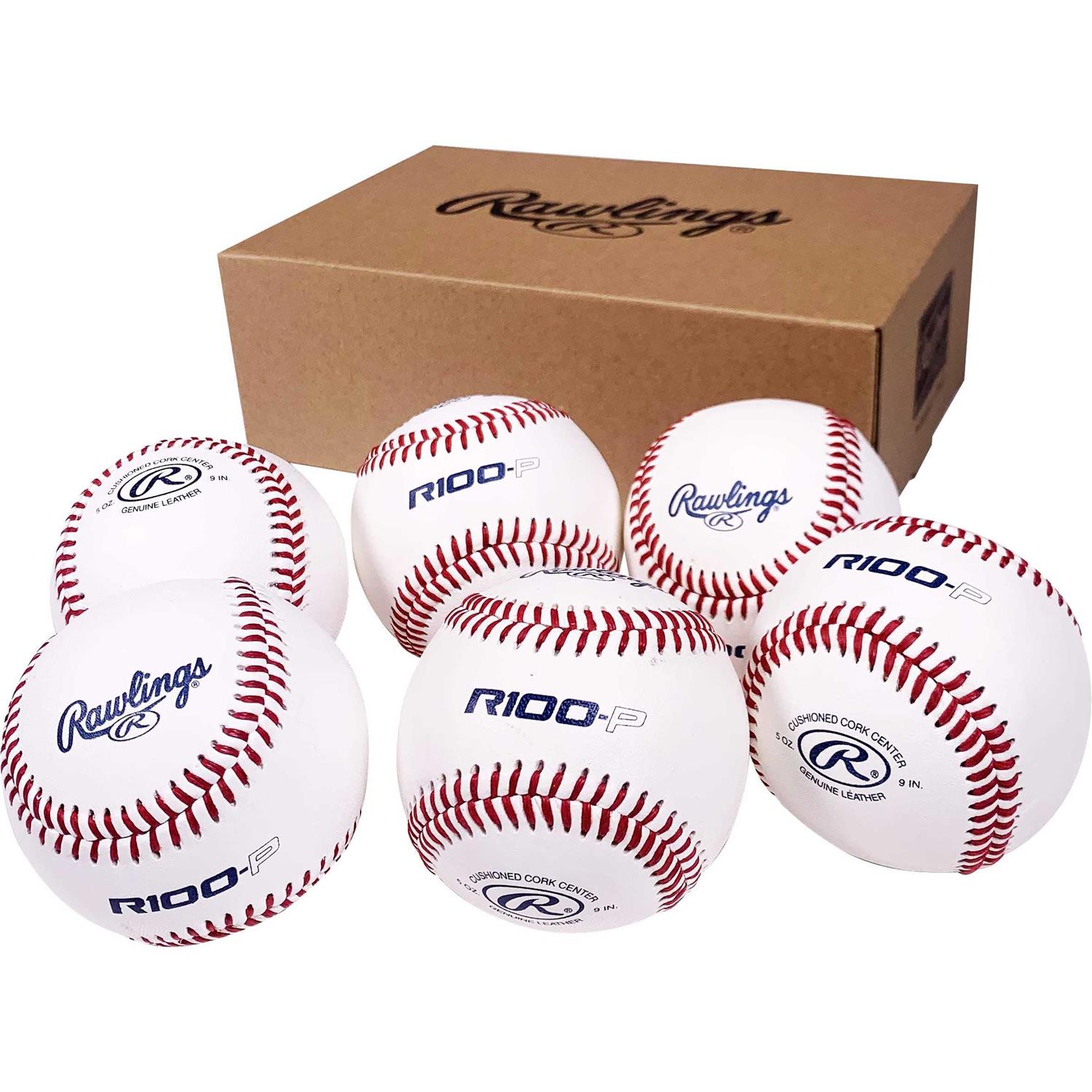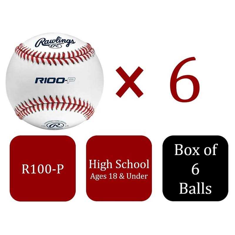 Ideal for high school and youth league players, ages 18+ Suitable for convenient use Improved grip with Rawlings raised seams Padded cork cork, standard windings and bonding adhesive Enhanced durability with full grain leather covering. Includes (6) R100-P balls in a box.
