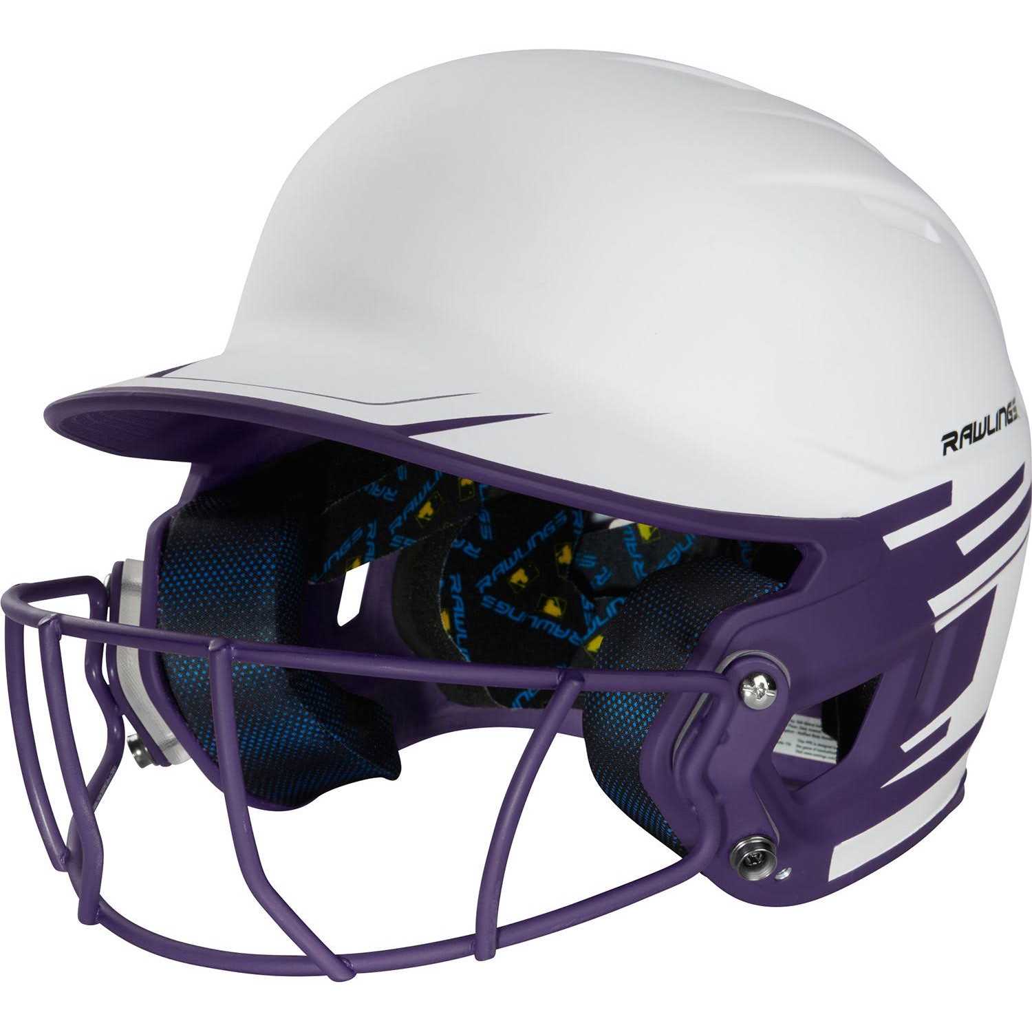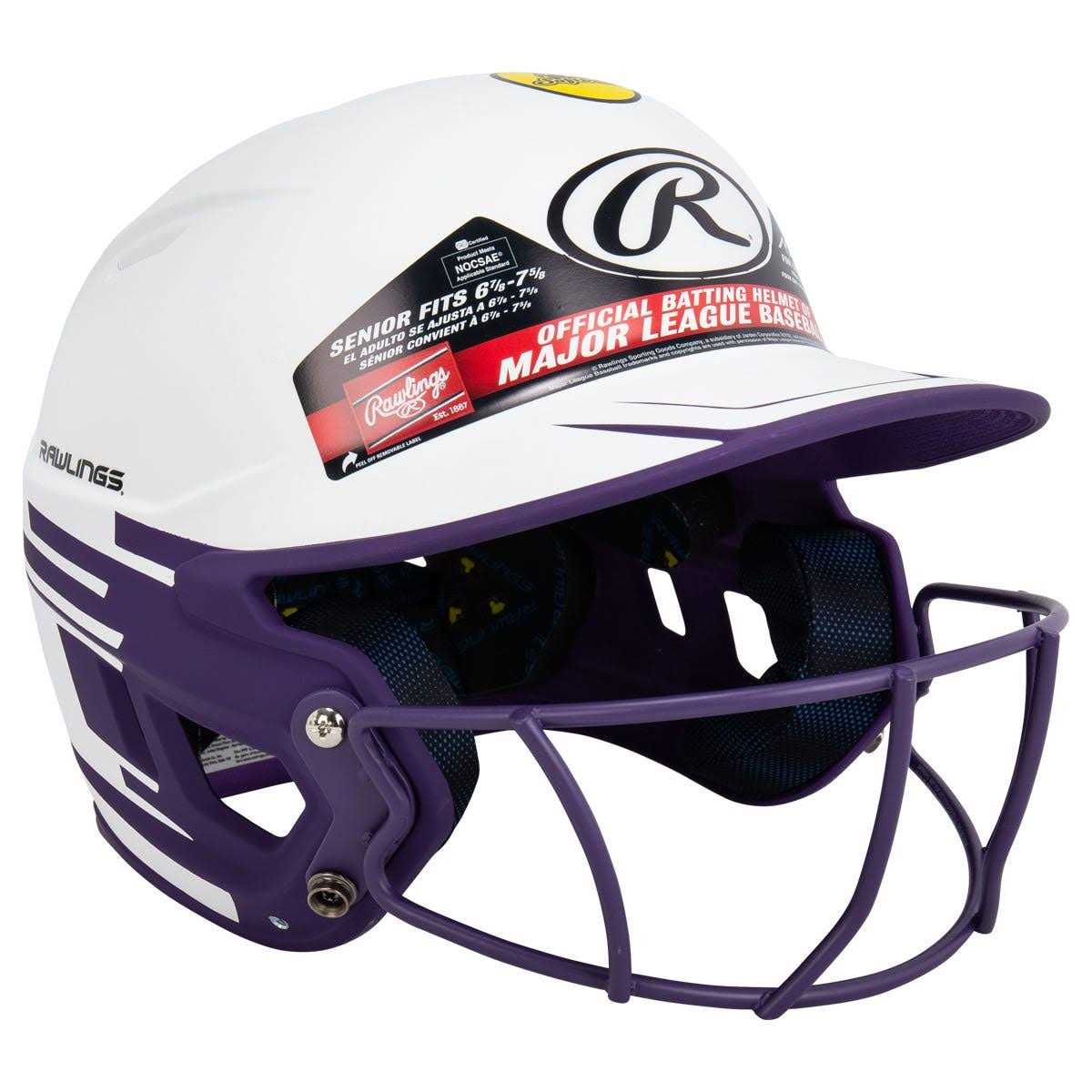 Rawlings Mach Ice Softball Batting Helmet, Senior White/Purple