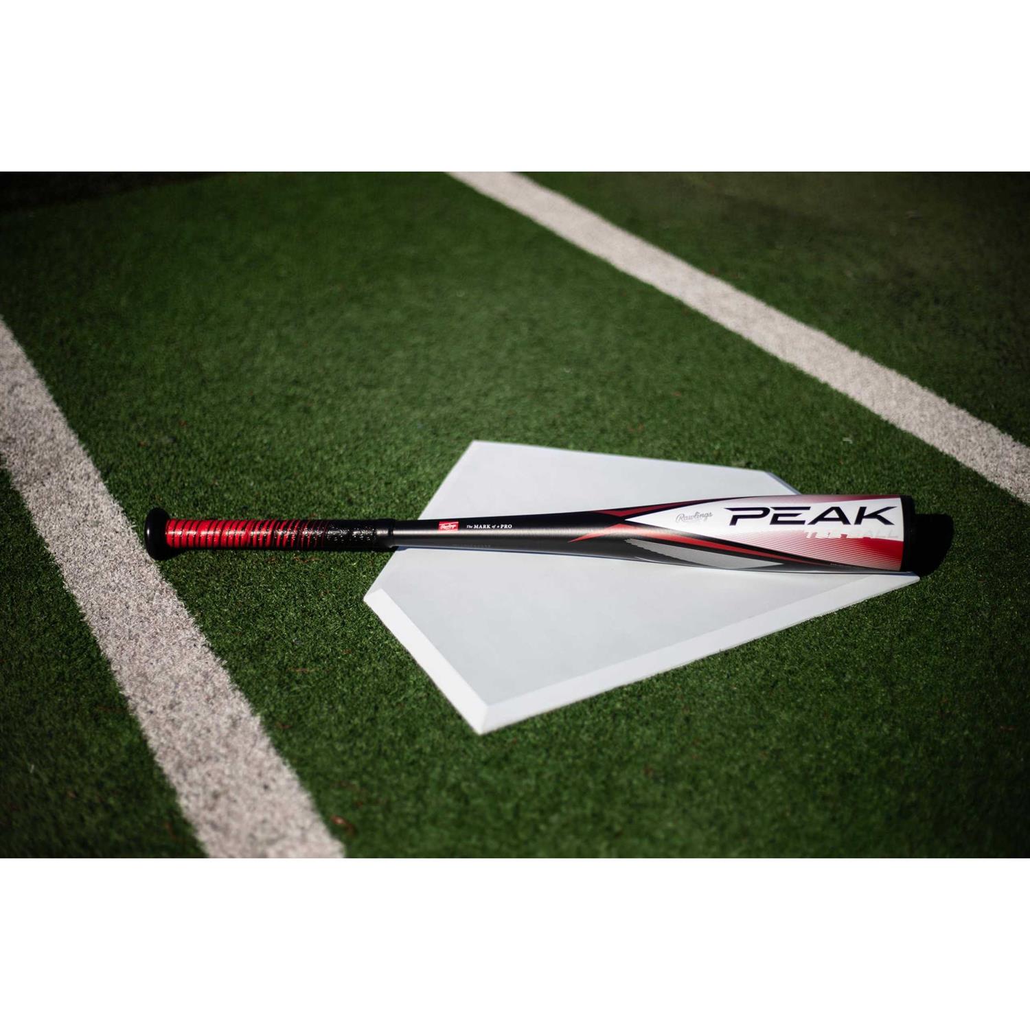 Reach the pinnacle of your game with the new Rawlings Peak USA baseball bat! The Peak features radically responsive, aerospace-grade alloy material that mashes baseballs and holds up season after season, making this one of the best value bats on the market. Hitters will love the light-swing weight, powered by our PureSpeed performance manufacturing, and sleek barrel taper that makes for easy-swinging power and superior barrel control. In addition, the ultra-light speed cap at the end of the bat adds even more velocity and concentrates mass in the sweet spot for extra power. The Peak USA baseball bat is available in three different drop weights, so find the one for you and start mashing. Get your Rawlings Peak USA baseball bat now!