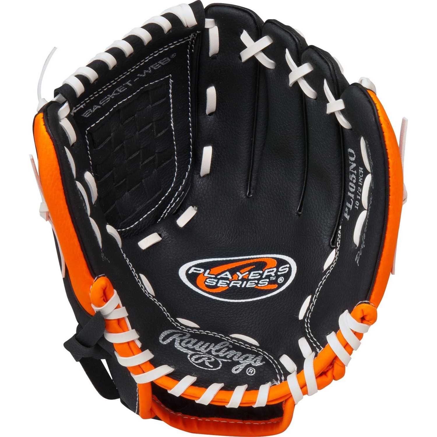 Introducing the Rawlings Players Series Baseball Glove, expertly crafted for young baseball enthusiasts aged 6-8 to kickstart their journey in the game. The glove’s easy-close feature, with its soft pliable shell, empowers budding athletes to comfortably control and close the glove as they learn the fundamentals. Its lightweight textured vinyl not only offers a professional appearance but also provides a youth-friendly feel, while the 10.5 inch Basket Web ensures optimal support for mastering defense at any position. Specifically designed for right-hand throwers, this glove, worn on the left hand, is a perfect companion for aspiring players on their path to success.