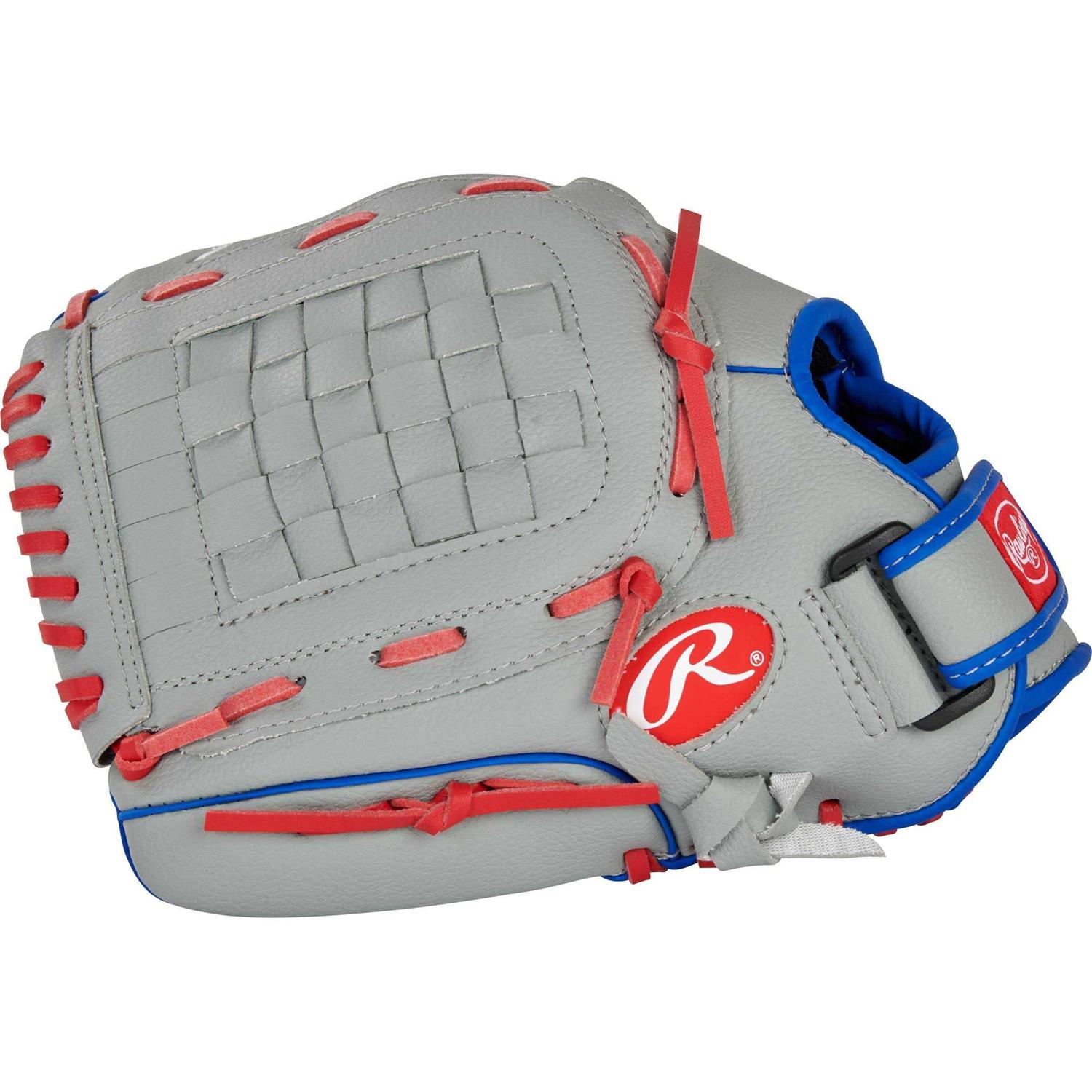 Rawlings Players Series Youth Tball/Baseball Gloves, Gray/Red, 11.5 inch, Left Hand Throw, Size: One Size