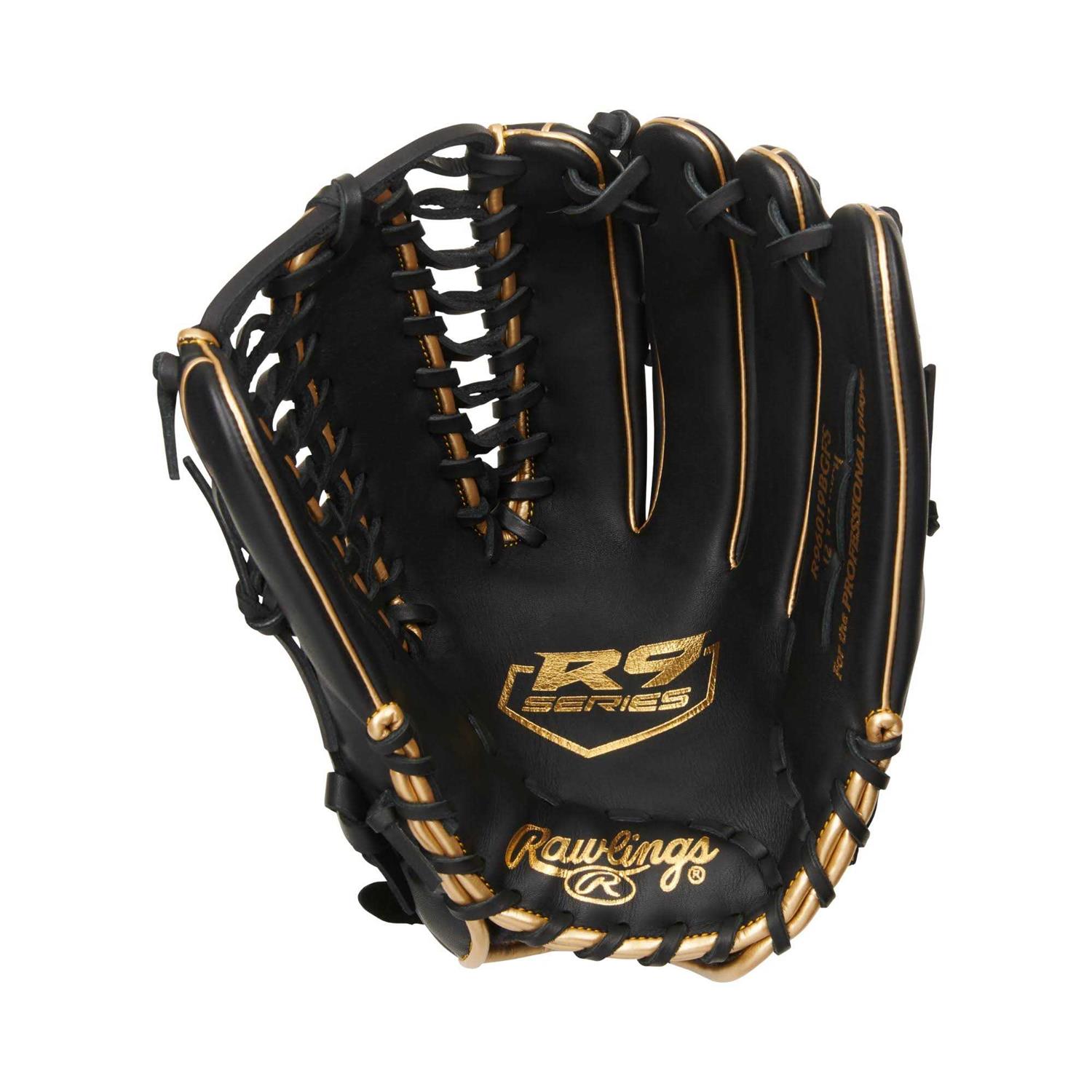 The 2021 R9 Series 12.75-Inch outfield glove was carefully constructed with a durable, all-leather shell. As a result, it’s a perfect choice for players looking for a quality glove without breaking the bank. It offers a soft, game-ready feel that’s great for select youth and high school players. This R9 outfield glove features a pro-like design and a 601-pattern, the same used by superstar Mike Trout. This pattern is popular for it’s huge, deep pocket and classic Trap-Eze web. In addition, our R9 gloves offer superior comfort and feel thanks to the padded finger back lining and thumb loop, and reinforced palm pad. All this is packed in a classic, eye-catching black and gold design too. The R9 outfield glove is perfect for any player looking for a quality glove at a great value.