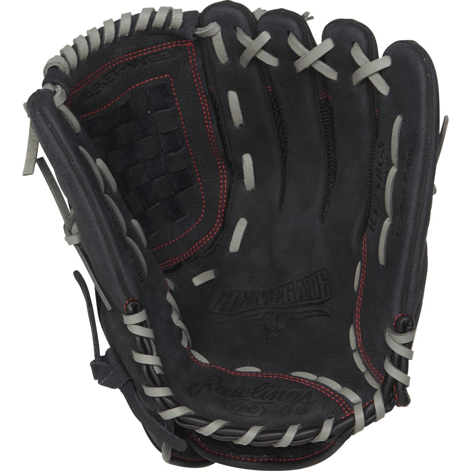Game-ready right off the shelf, the Rawlings renegade 12. 5-Inch Baseball glove features a leather shell palm construction for durability and shape retention. The versatile mitt has a deep, flexible pocket, making it ideal for both Baseball and softball play. Its lightweight Pro mesh back design provides optimal balance and added quickness to snag quick-approaching balls. The high-density cushioned palm and index finger pads absorb impact to keep your hand protected. The renegade Series glove offers high-quality construction and an ultra-soft feel without sacrificing durability or shape retention.