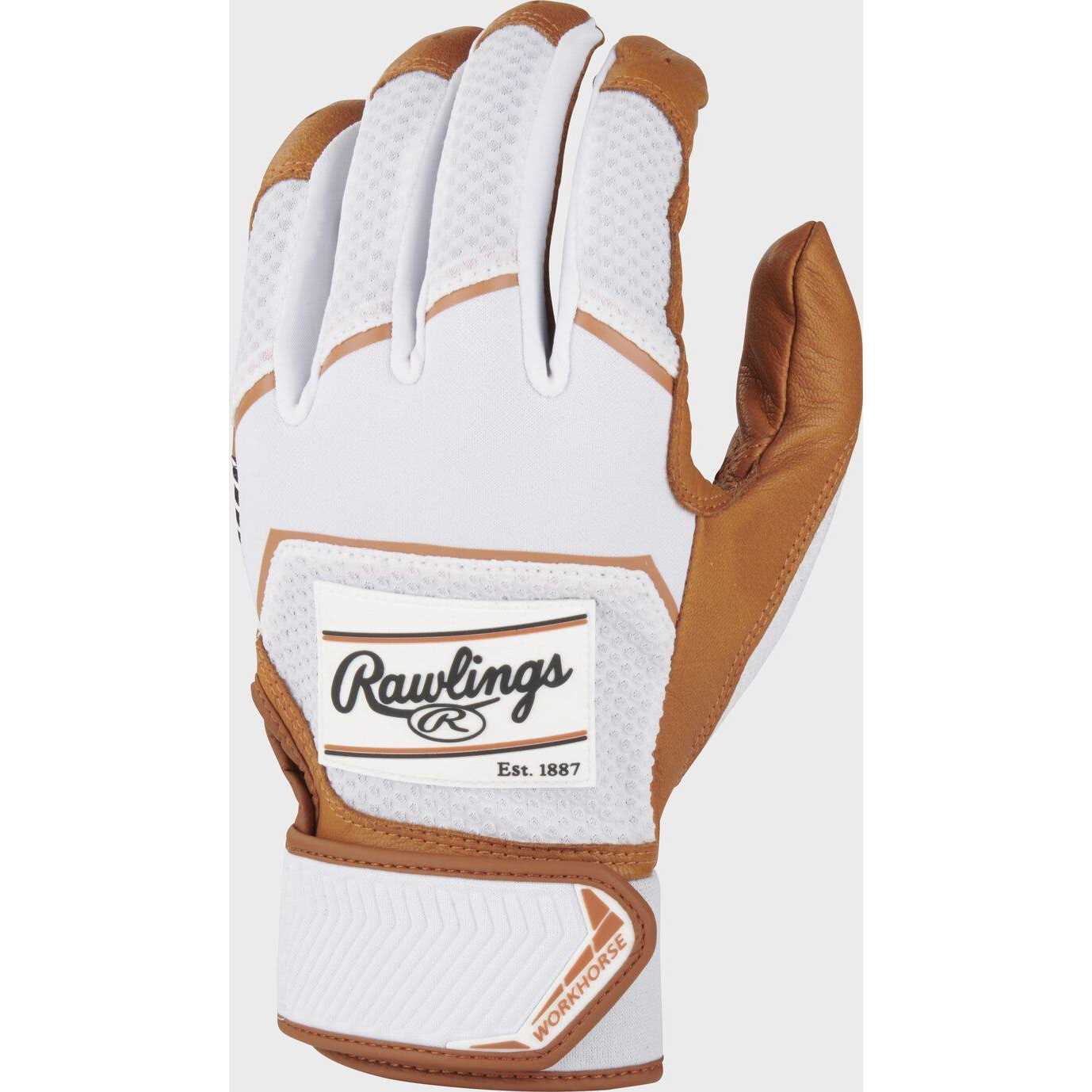 Take your game to the next level with the 2022 Rawlings Workhorse compression strap batting gloves. They’re constructed with an Oiltac leather palm to provide the same unmatched quality you expect from our traditional Workhorse batting gloves. However, the compression fit wrist strap wraps around your entire wrist to allow you get the perfect fit for maximum comfort. In addition, these batting gloves also feature a reinforced palm to reduce hand abrasion while creating a seamless feel. As a result, these Workhorse compression strap batting gloves are sure to fit great, and give you peak performance at the plate. Be more confident every time you’re in the box when you ‘rock’ these gloves. The 2022 Workhorse compression strap batting gloves are the ultimate combination of fit and performance. Order yours now and level up your batting this season!