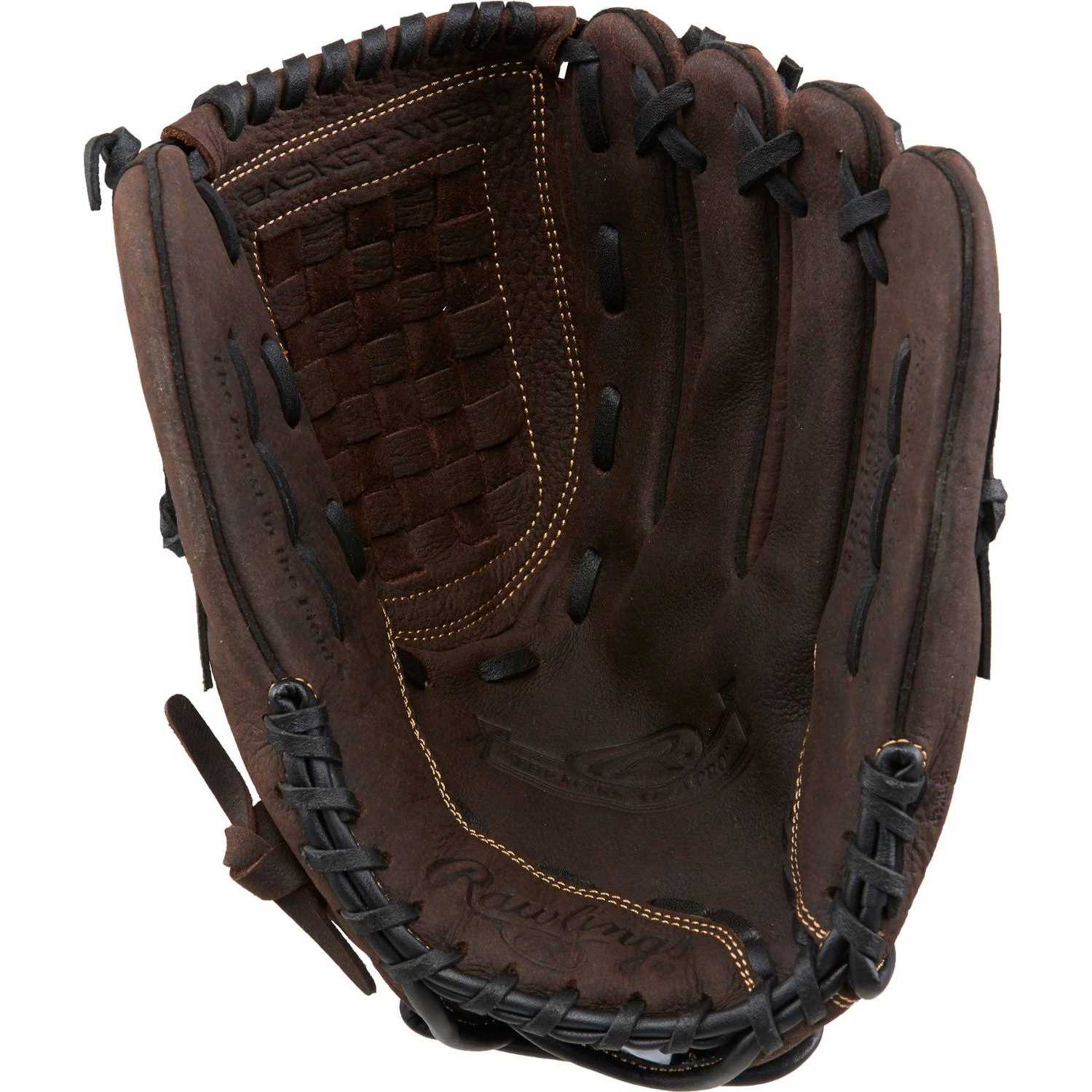 The Rawlings RGB 12.5″ Baseball/Softball Utility Glove features a full-grain oiled leather shell and rawhide laces.