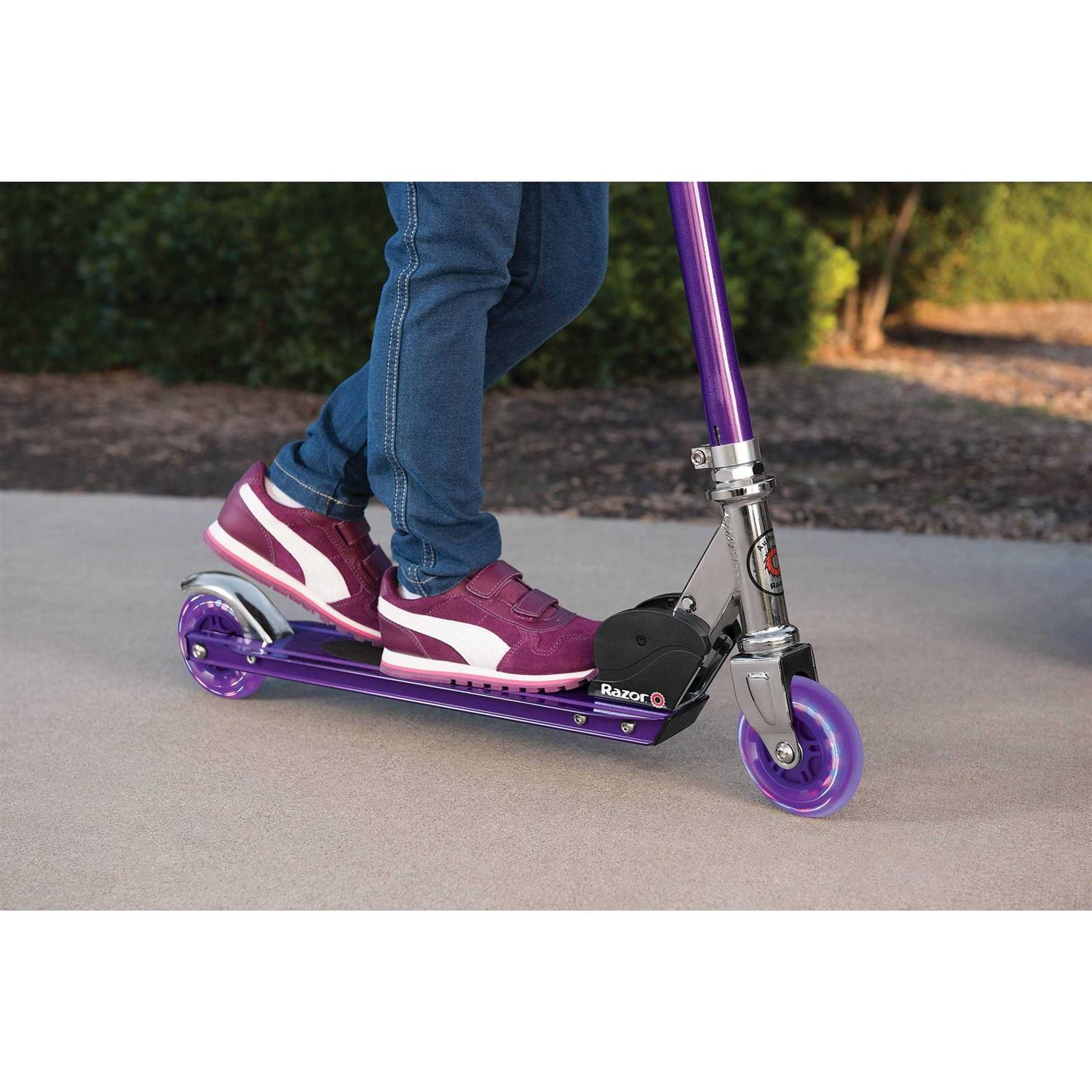 Razor S Lighted Folding Kick Scooter – Ages 5+ and Riders Up to 110lbs, Purple