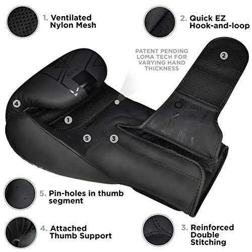RELIABILITY AND RESILIENCE – Use of Maya Hide ConvEX Skin Leather in the Kara Series boxing gloves makes them durable and reliable for long-term use during the Boxing, Muay Thai, and Kickboxing training sessions among other combat sports. IMPROVED ALIGNMENT – The single piece LOMA Tech design of the palm area and thumb helps create an improved alignment between the fist and thumb which allows the users to punch better. IMPACT DISPERSION – Force of impact is dissipated across the structure of the gloves due to the presence of Quadro Dome 3 padding which results in a comfortable training experience for the users. BETTER FIST FORMATION – The gloves use DenZo-Tron Grip Bar in the upper palm area to allow the users to attain the optimal posture for powerful punches during training and competitions. The mesh panel in the palm area ventilates the gloves to keep the hands dry. EASE OF USE – The Quick Touch Fasteners make it easy to put on or take off the gloves while the dual stitching in the sparring gloves makes them durable and resilient for extensive training sessions. (Small & Medium Sizes are recommended up to 14 years of age). RDX Kara Series Boxing Gloves are manufactured with Maya Hide ConvEX Skin leather for prolonged durability and resilience during training and sparring sessions of boxing, Muay Thai, and kickboxing among other combat sports. The Loma Tech (patent pending) design provides augmented support to the formation and alignment of the fist and wrist for a much finer punching technique. Quadro Dome 3 padding combines with soft EVA foam and SpongeX padding to diffuse the brunt of the force from punches, while the DenZo-Tron grip bar in the sparring gloves allows the user to close the fist for better punches. The mesh panel in the palm area keeps the boxing gloves dry from the inside by allowing the air to flow, while the Quick-EZ hook-and-loop closure makes putting or taking off the training gloves much easier. The dual stitching throughout the structure makes the RDX Kara Series Boxing Gloves highly durable and resilient for long-term use in training.