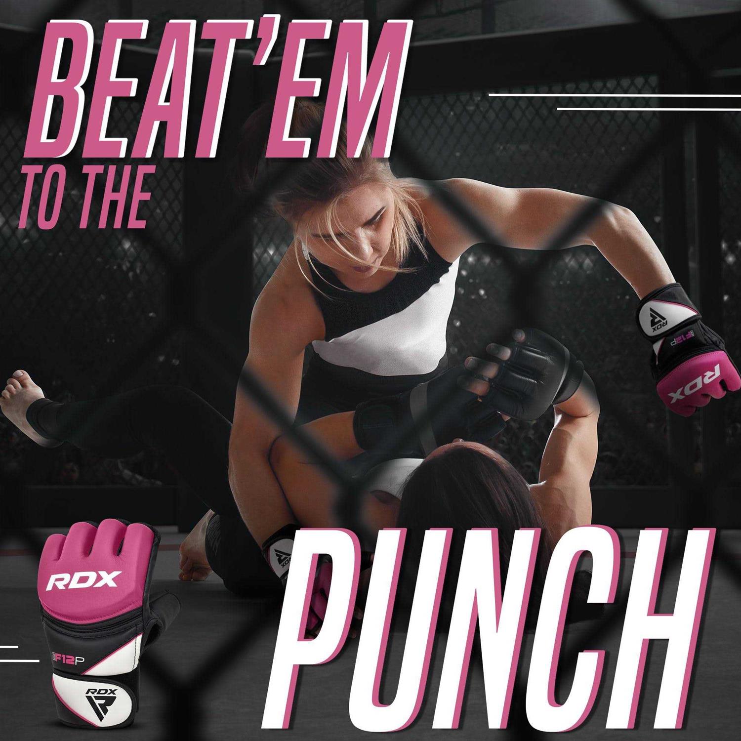 RDX Women’s MMA Gloves Grappling Martial Arts Sparring Punching Bag Cage Fighting Maya Hide Leather Mitts Combat Training, Pink, Small