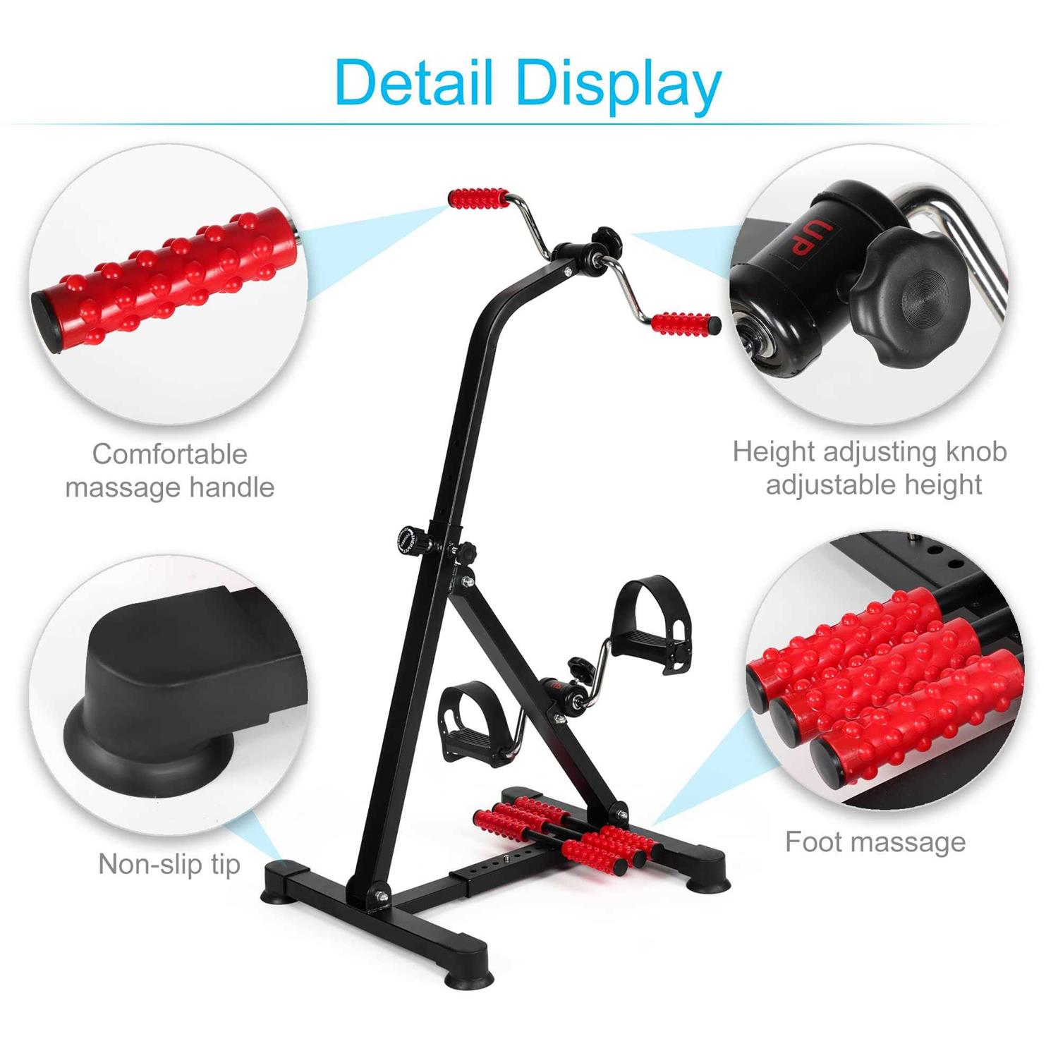 【Fully adjustable】The handles,overall height, the length of the base, all with an adjustable design. let you work arms and legs for safe, low-impact exercise all from the comfort of your chair or sofa. 【Lightweight and Sturdy】The weight of the exercise bike is only 13lbs,can be moved and used in every part of the house. 【Multiple Application】Suitable for sports enthusiasts who like indoor fitness and some patients who with cerebral palsy, stroke,hemiplegia, amputation, spinal cord injury, upper and lower limb dysfunction, convenient for limb exercise training to achieve fitness rehabilitation effect REAQER Fully adjustable The handles,overall height, the length of the base, all with an adjustable design. let you work arms and legs for safe, low-impact exercise all from the comfort of your chair or sofa. Thoughtful design Handles and soles have comfortball massage,exercise tired to massage the sole of the foot to relax.Stable triangular structure and 4 disc bases make exercise bike more stable. Lightweight and Sturdy The weight of the exercise bike is only 13lbs,can be moved and used in every part of the house. Multiple Application Suitable for sports enthusiasts who like indoor fitness and some patients who with cerebral palsy, stroke,hemiplegia, amputation, spinal cord injury, upper and lower limb dysfunction, convenient for limb exercise training to achieve fitness rehabilitation effect.