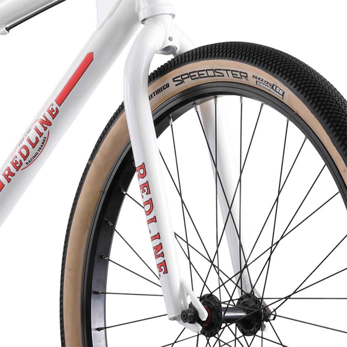 The 2021 Redline SQB-26 BMX Bike is a nod to Redlines very first production BMX bike the Squareback. It features an aluminum alloy frame and a full chromoly steel fork. Vintage-style graphics double head tube gussets and the V-shaped handlebar let you roll around town in retro style. You can also bust out a few laps at your local track thanks to the race-worthy components including Flight cranks a Redline Sport saddle and Vee Speedster 262.125 inch tires.