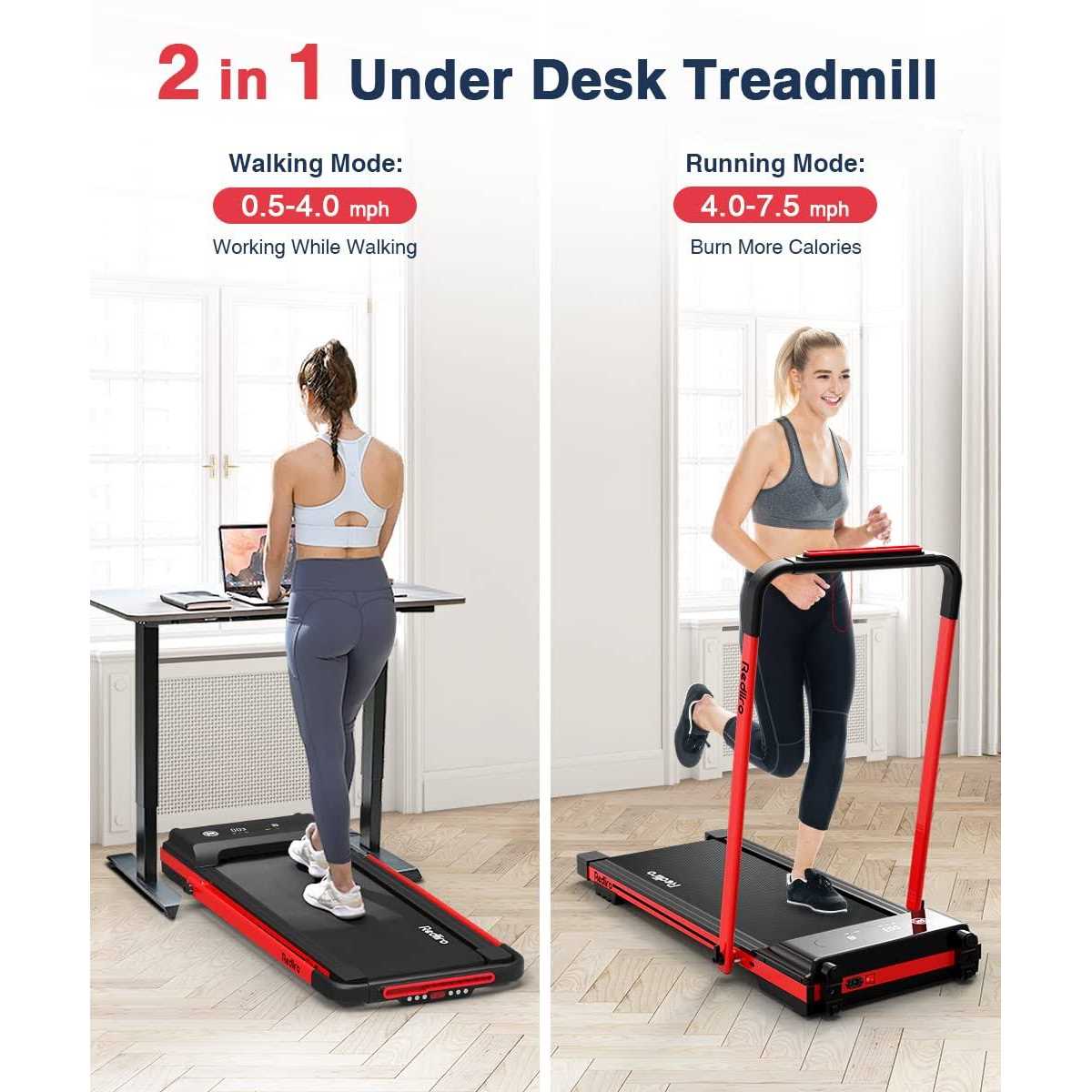 Redliro Under Desk Treadmill 2 in 1 Walking Pad, Portable, Folding, Electric, Motorized, Walking and Jogging Machine with Remote Control for Home