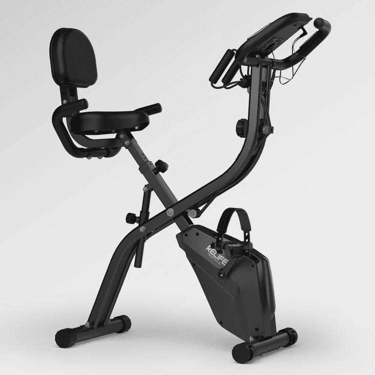 Relife Sports 3 in 1 Upright Exercise Bike with Resistance Band Foldable Stationary Bike for Home Gym Recumbent Indoor Cycling Bikes, Black Our Upright Exercise Bike for home is a versatile and convenient piece of fitness equipment that allows you to engage in cardio workouts from the comfort of your own home. This upright exercise bike features a sturdy frame, adjustable seat 10 (forward & backward & up & down), allowing users of different heights and sizes to find a comfortable and ergonomic riding position. The pedals are equipped with adjustable resistance bands, ensuring a secure and stable foot placement during workouts. The stationary bike is equipped with a digital display that provides essential workout information such as your pulse, distance, calories burned, speed, total distance, time, and scan in real-time. It may also include heart rate monitors for more advanced tracking and training options. All eight resistance levels on the upright stationary bike can be adjusted to suit your fitness level and desired intensity. This allows you to gradually increase the challenge as you progress in your fitness journey. Using an Indoor Cycling Bike with straps regularly can help improve health, burn calories, and strengthen lower body muscles such as the legs, thighs, and glutes. It is a low-impact exercise option that is gentle on the joints, making it suitable for individuals of all fitness levels. The foldable Exercise Bike has transportation wheels for immediate use and easily store away without any heavy lifting or muscle strain. It is a great addition to any home gym setup, providing a convenient and effective way to stay active and achieve your fitness goals. Enjoy Folding Exercise Bike | 3 in 1 Exercise Bike | Cycle Foldable Exerpeutic Bike Journey at Home. Specifications: Model: EB501 Weight Capacity: 330 lbs (150 kg) Flywheel Weight: 5.5 lbs (2.5 kg) Product Meas: 47 x 26 x 16 Inch Folding Meas: 16 x 9 x 53 inches G.W: 46.9 lbs (21.3 kg) N.W: 42.3 lbs (19.2 kg) Minimum Height: 42 Inches Maximum Height: 53 Inches Material: Alloy Steel 2 x AAA batteries required. (included)