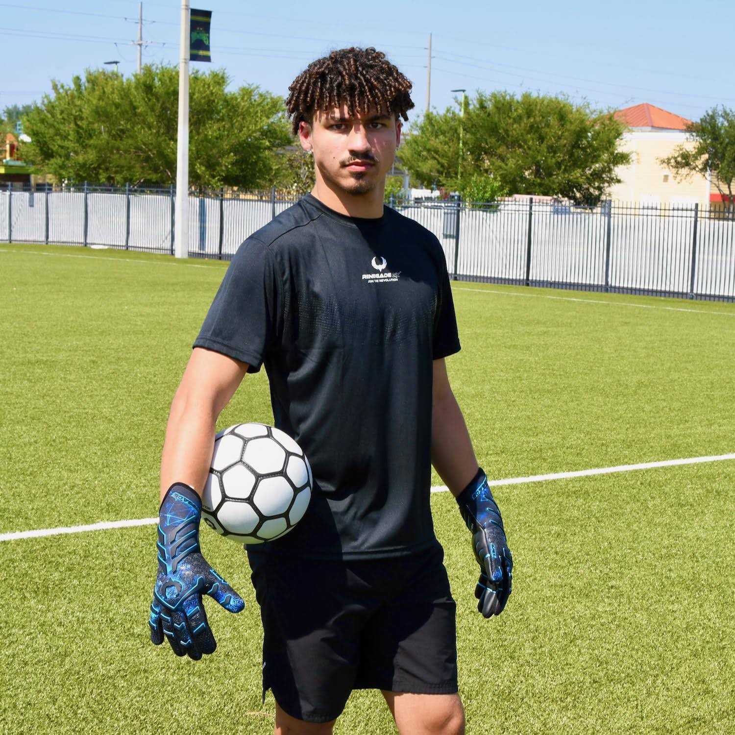 Renegade GK Apex Strapless Professional Soccer Goalie Gloves (Sizes 6-12, Level 5.5) 4+5MM EXT Contact Grip | Evo Negative Cut Goalkeeper Gloves for