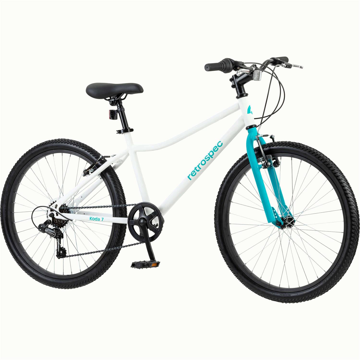 Made for kids with features used by adults, the Retrospec Koda 7 will transform them into a more confident cyclist. Its adjustable seat and handlebars are designed to handle their growth spurts, while its 7-speed drivetrain with twist-grip shifters and easy-reach. Responsive V-brakes will make them comfortable with using the gears and hand brakes they’re likely to find on their first adult bike. Start their cycling journey early with the Koda 7. FramesetWheelsetAccessoriesDrivetrainComponents
