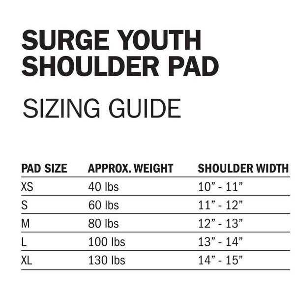 Youth sized shoulder pad complete with built-in back plate. The Surge Youth Shoulder Pad allows for maximum range of motion and is ideal for all positions.