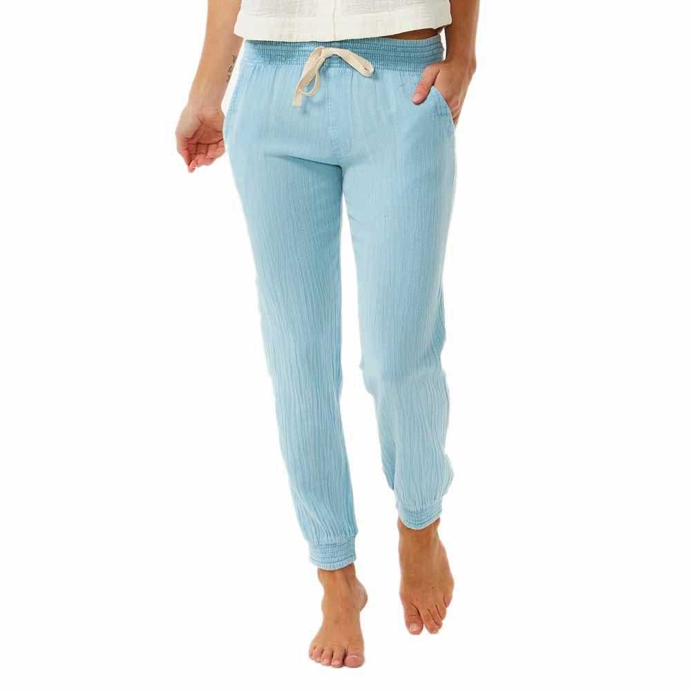The Classic Surf Pant is one of our favorite essentials. The soft, cotton crepe poplin makes these the perfect beach pant and a great basic. They feature side and back pockets, as well as functional drawstrings for fit. The Rip Curl Classic Surf Pants are and remain an every-season choice. Pair with your favorite bikini top, solid or graphic tee for an effortless, surf-inspired look. Ideal for layering over swimwear, these versatile pants enhance any beach-ready wardrobe.