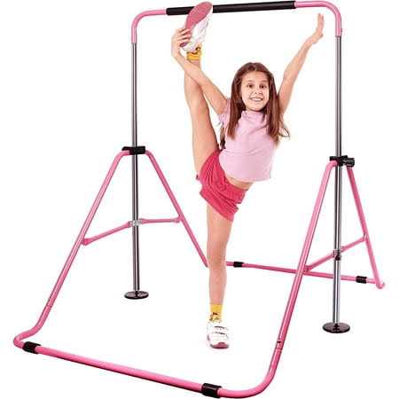RitFit Foldable Gymnastics Training Bar for Kids, Height Adjustable Kip Bar with 330 lb Capacity for Gymnastics, Streching, Hanging, Pull-Up (Pink),