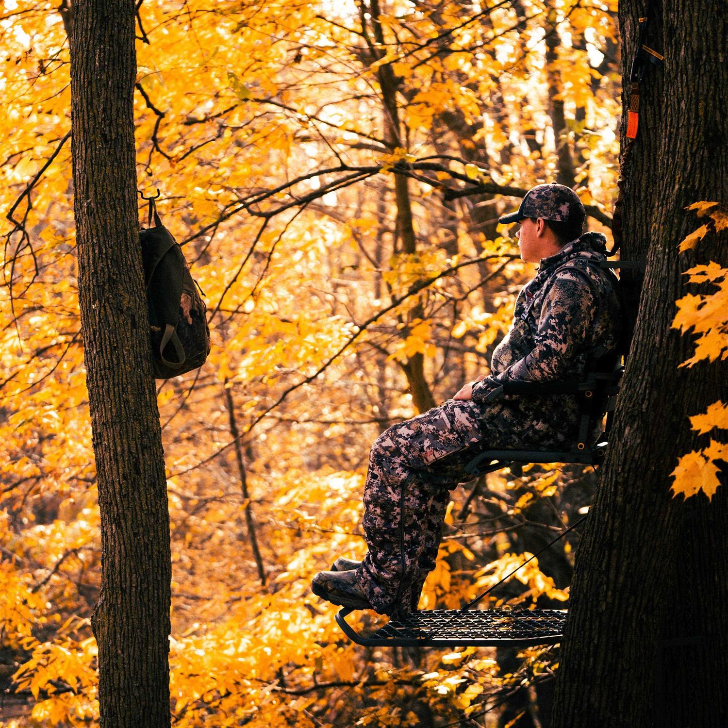 Just because you’re in the woods, doesn’t mean that you have to be uncomfortable. Rivers Edge agrees and constructed the Big Foot TearTuff XL Lounger Hang-On Stand to give you a relaxing hunt. It still has the extreme portability of its smaller brother, but with a touch of luxury. The extra-large platform gives you room to stretch out and move around on those long days, as you wait for that prize buck. The TearTuff seat, footrest and padded backrest make for an enjoyable all-day hunt without adding tons of additional weight. And when you’re not taking that perfect shot, the padded, independent flip-up armrests give you the perfect place to rest those weary limbs. Lounger style, TearTuff seat is extra-large and provides hours of comfort Ergonomic backrest does not rest against the tree Noiseless strap attachment system eliminates metal on metal contact, making installation a whole lot quieter Improved lever action attaches the stand even more securely and levers in more aggressively Large platform with built-in footrest for leg-stretching comfort Seat flips up for full platform use Padded armrests flip up independently Folds flat for backpacking 300 pound capacity Imported Order today!