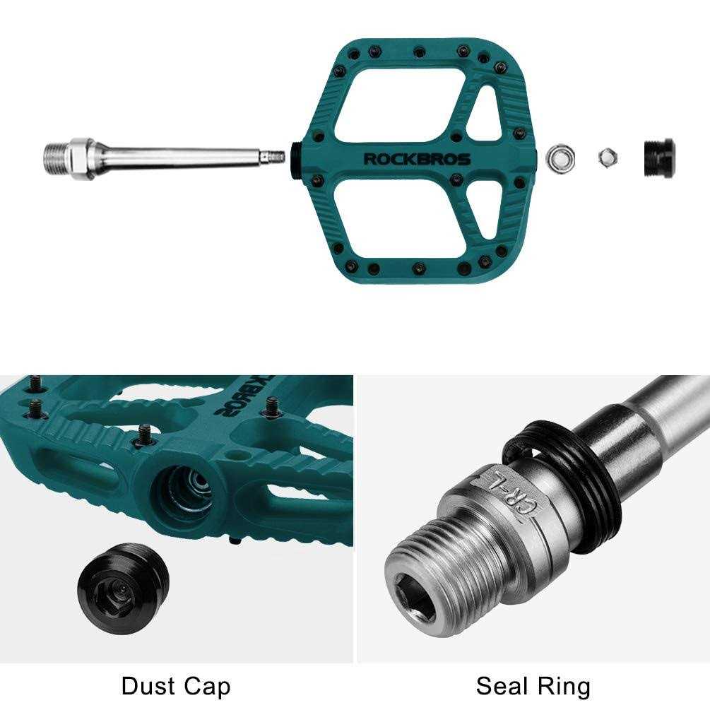 ROCKBROS Mountain Bike Pedals Nylon Composite Bearing 9/16 MTB Bicycle Pedals with Wide Flat Platform