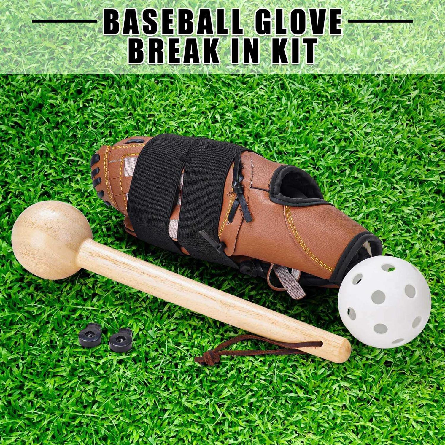 【Be a Pro Defender】this baseball glove break-in kit! It comes with a glove mallet, two wraps, a plastic training ball, and six black glove locks. Use these tools to shape your new baseball glove to fit your playing style perfectly. Please note that the leather base glove is not included in the kit. 【A genuine One-Piece Glove Mallet】: The AliBall softball glove mallet is crafted from solid wood, ensuring that the ball end stays securely attached without any concerns. 【Effortless Glove Break-In】Shape and break in your baseball glove effortlessly with our glove wrap. It’s quick to put on and take off, taking just a few seconds. Say goodbye to the risks of using steam or hot water that can damage the leather. 【Taking care of your Softball & Baseball Gloves】Our baseball glove breaking-in kit is designed to effectively break in and mold gloves for both softball and baseball. The included wrap aids in maintaining the pocket shape and expedites the glove breaking-in process. 【User-Friendly】To make your new glove more comfortable, simply use a mallet to repeatedly break it in and soften the leather. The mallet’s handle can also be used to separate the fingers of the glove that may be stuck together, making it easier to put on. Utilize elastic straps along with a plastic ball. Insert the plastic ball into the baseball glove first, then tightly wrap both the ball and glove with the strap.