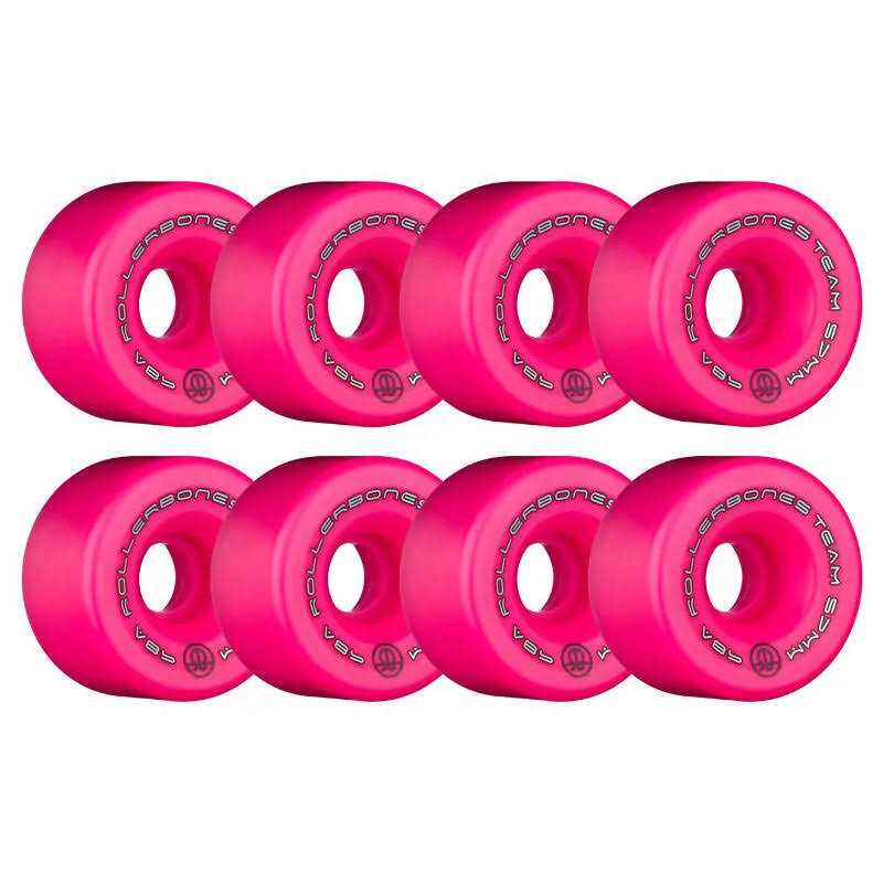 Rollerbones Team Logo 98A Recreational Roller Skate Wheels (Set of 8) Pink 57mm
