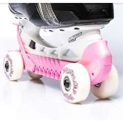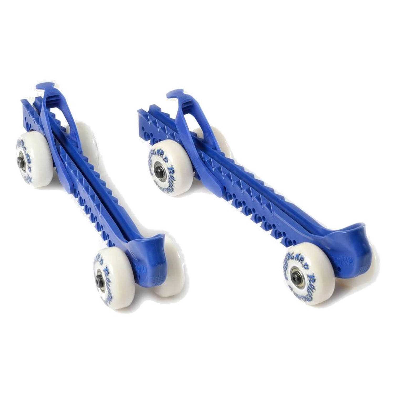 Getting to and from hockey practice just got a whole lot easier because with Rollergard Adjustable Kids Ice Skate Guards your little skater can get to and from the ice rink without taking their skates on and off. Hockey players and skaters can continue to train and warm up even when they’re not on the ice. That’s great for skaters looking to improve their staking stride and endurance. These roller skate ice blade guards fit most sizes of skates thanks to the adjustable non-slip strap and lock notch design. These roller skate guards are made to last season after season too and they’re constructed with durable non-marking wheels ABEC 5 bearings and lightweight plastics. Able to support any skater up to 200 pounds these Rollergard ice skate guards are a great addition to any ice skaters’ equipment.