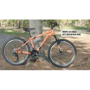 The RTT women’s 24-inch mountain bike will spark your thirst for the great outdoors. It features a lightweight, strong aluminum frame that will never rust, front suspension to absorb bumps and uneven terrain, easy-to-use linear pull brakes, and precise, smooth trigger shifting with 21 speeds. Enjoy the simple freedom of smooth shifting with no twisting and no wrist strain. The RTT delivers 21 speeds with a complete SHIMANO drivetrain. The SHIMANO EZ fire Plus Trigger combines with the Shimano Tourney TY300 rear derailleur to deliver efficient, precise shifting between gears. So smooth and easy. Your index finger and thumb trigger gear changes so your hands never leave the handlebar. Removable rear derailleur guard protects gears from damage. For adrenaline-soaked adventures and rugged recreational fun, The Royce Union RTT waits for you. Passionate about the outdoors? Royce Union mountain bikes. Since 1904.