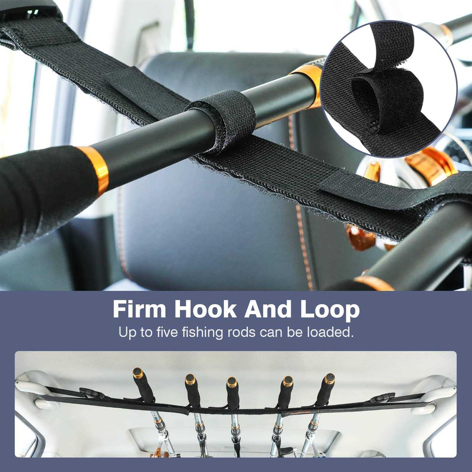 Roylvan 2 Pack Vehicle Fishing Rod Rack Holder Straps, Adjustable 30 to 54 Inches Horizontal Car Roof Fishing Pole Storage Carrier Belt, 5 Rods