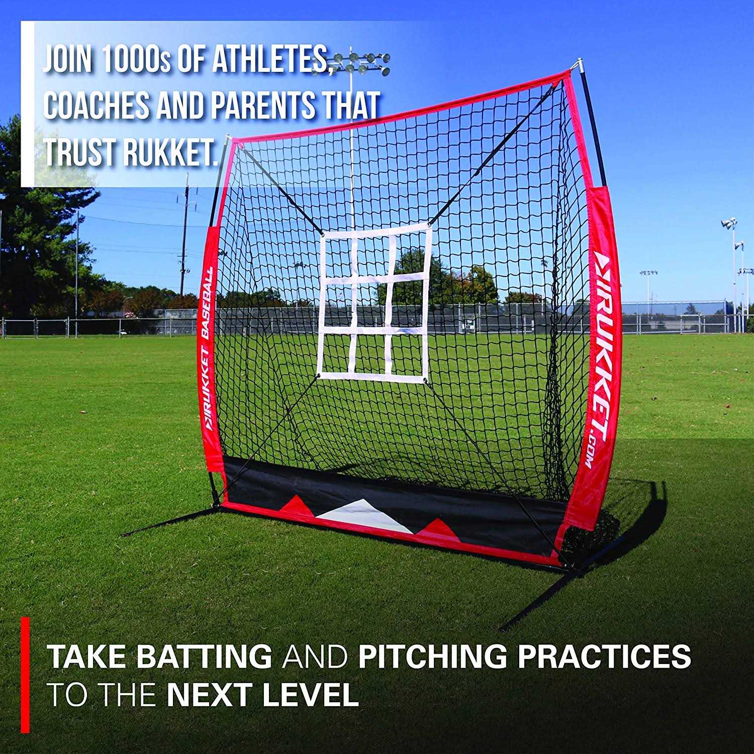 Rukket Sports Rukket Baseball Softball Practice Net Hitting Pitching Strike Zone 5×5 3 Training Balls