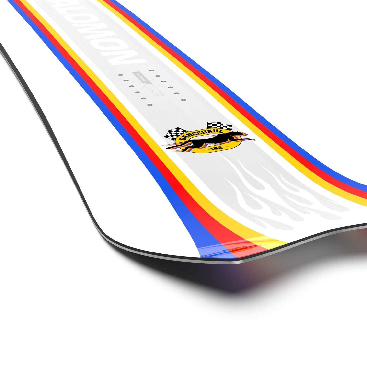 The Dancehaul has quickly established itself as the go-to board for anyone who wants a piste and powder-focused board that puts having fun at the top of its agenda. Perfect as a daily driver for anyone who loves to carve around the resort and get into the deep stuff on a powder day, this stunning board makes you rethink your whole riding experience. Built around a fully directional tapered shape with a broader riding platform and a predictable radial sidecut, the Dancehaul lets you lay out effortless long carves without worrying about toe and heel drag. That extra width also increases the volume, which in conjunction with that long nose and cut-out tail, gives effortless float. However, the Dancehaul’s secret weapon is in its construction; resisting industry norms to pack it full of high-end materials and make it super stiff and powerful, Salomon has knocked back the aggression a couple of notches and, in doing so, has created a high-performance board that’s also one of the most fun to ride boards that you can strap into.