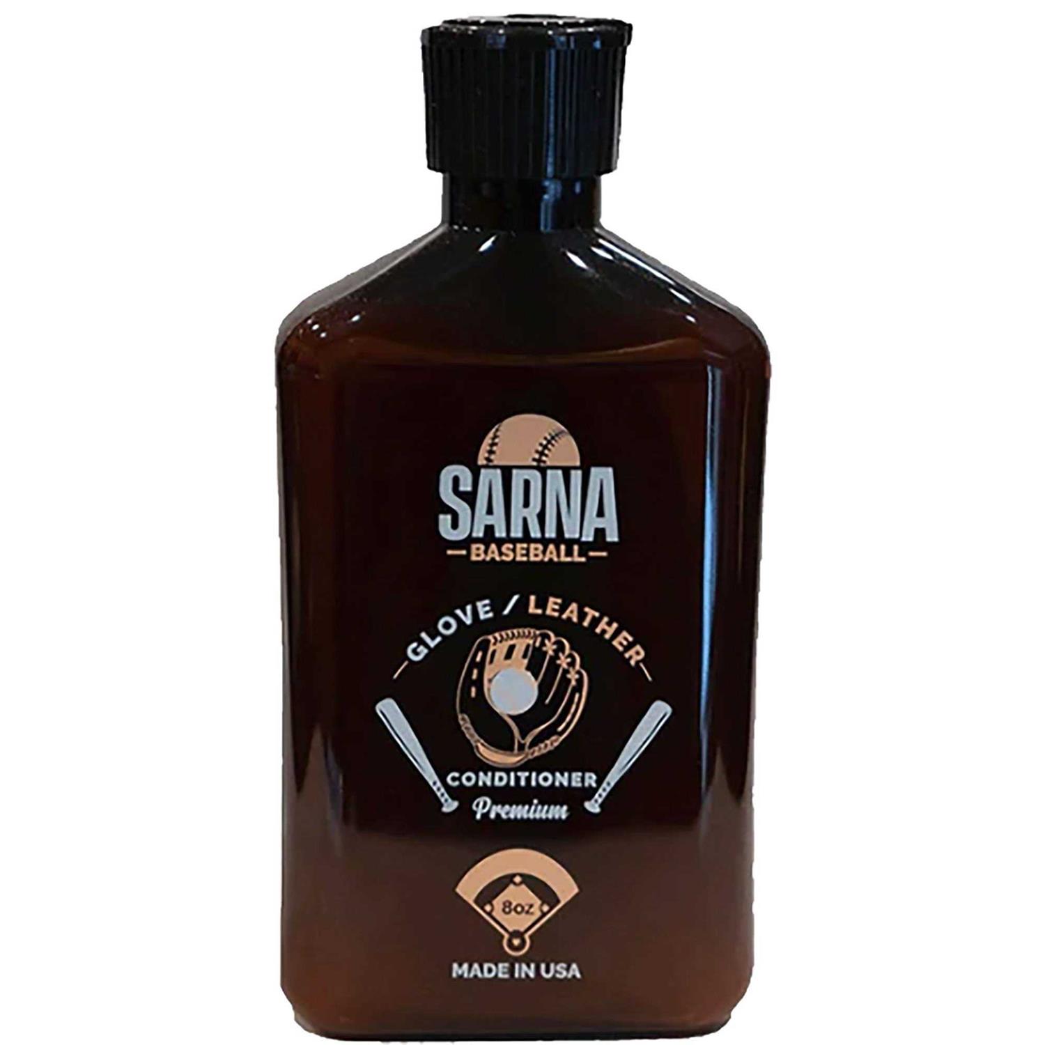 Sarna Baseball Glove Leather Conditioner is a true leather conditioner that does not contain detrimental waxes as active ingredients. Our formula allows the leather to breathe ensuring durability and a long healthy life. It also softens your new, stiff leather glove to assist in properly breaking it in. Trust in Sarna Leather Conditioner to preserve and protect your gloves and to treat them as they should be treated. Product Details: Keep your expensive baseball mitts soft and ready for play. Break-in your equipment faster with our premium formula. Restore old worn mitts to their former glory. Will not darken the leather or alter the color. Made in the USA.