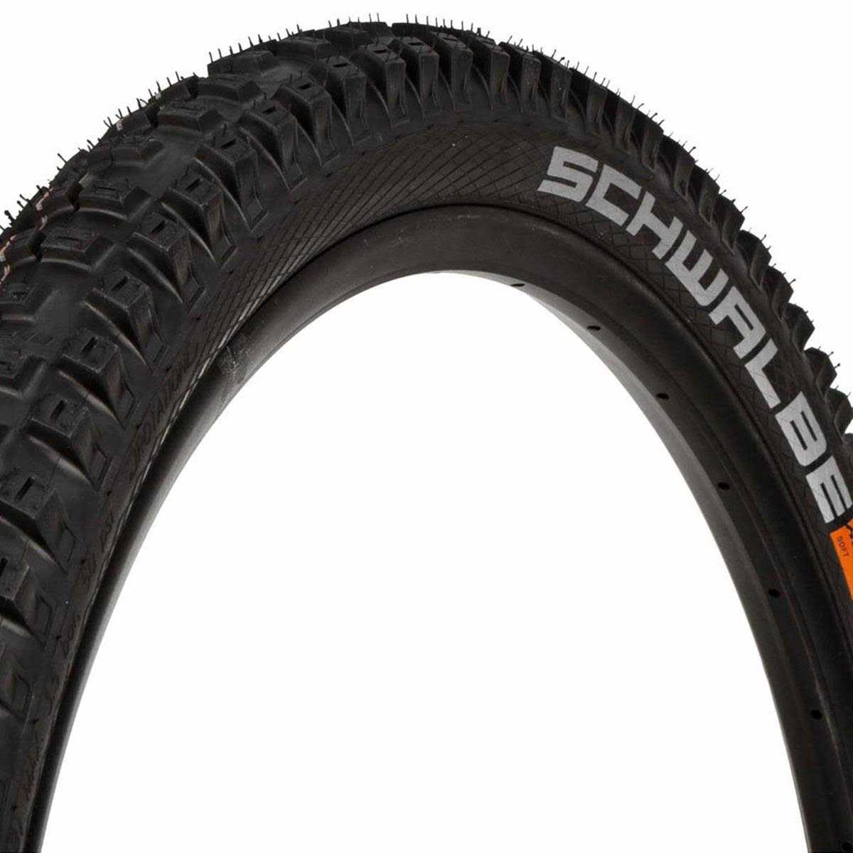 Schwalbe’s Big Betty is back! Schwalbe have brought the legendary Big Betty back up to date with everything a modern tyre needs. Using the latest technology, the Big Betty makes for a great tyre that is best used out back with a more aggressive tread tyre up front. Long, wide & well supported centre tread for outstanding braking traction Super blocky shoulder tread grips tenaciously when cornering Open tread clears mud and bites into dust – perfect for a range of conditions Addix rubber compounds provide amazing grip and durability Available with Schwalbe’s new Super Downhill and Super Gravity tubeless-ready casings Big Betty is a great rear tyre for a range of conditions from damp to dry, offering incredible breaking and cornering traction, working well with Schwalbe’s much loved Magic Mary as a front tyre. The Big Betty has wide, long and well supported centre tread blocks for aggressive bite when braking while providing excellent traction when climbing too. The super blocky shoulder tread blocks grip tenaciously too, with the open nature of the tread digging into soft, wet and dusty surfaces. Schwalbe prides itself on using the very latest technologies and the Big Betty features their latest Super Downhill and Super Gravity casings, which provide excellent puncture resistance and are super durable. Schwalbe’s much lauded Addix rubber compounds are used to provide excellent grip and durability too. If you want a versatile, tough and grippy rear tyre for your downhill or enduro bike, go big or go home with Betty!.