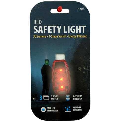 The SE 30 Lumens Energy Efficient Safety Light is compact and lightweight and has a convenient clip so you can attach it to your bracelet backpack helmet shoes and more. You can wear this while cycling walking or jogging outdoors at dusk dawn or night. This item allows you to feel safe so drivers on the road can easily see you. This product features a 3-stage switch including hi strobe and blink.