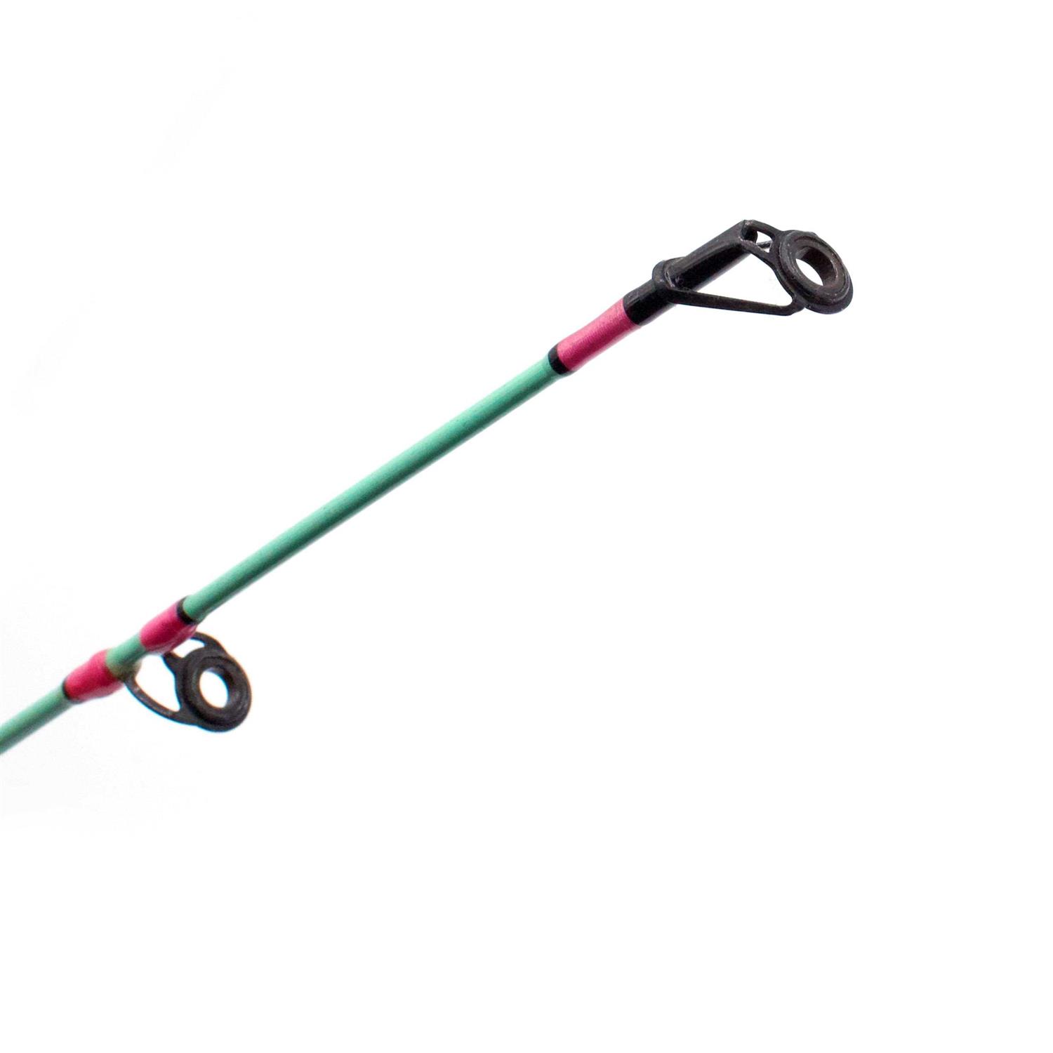 Catch attention and fish with these Shur Strike/Sea Striker pink and teal rods and reels. The teal rod blank is accented with pink wraps. EVA foam grips are lightweight and comfortable. Graphite reel seat features stainless steel hoods. Shur Strike/Sea Striker pink and teal graphite reels have one ball bearing and come filled with pink monofilament.