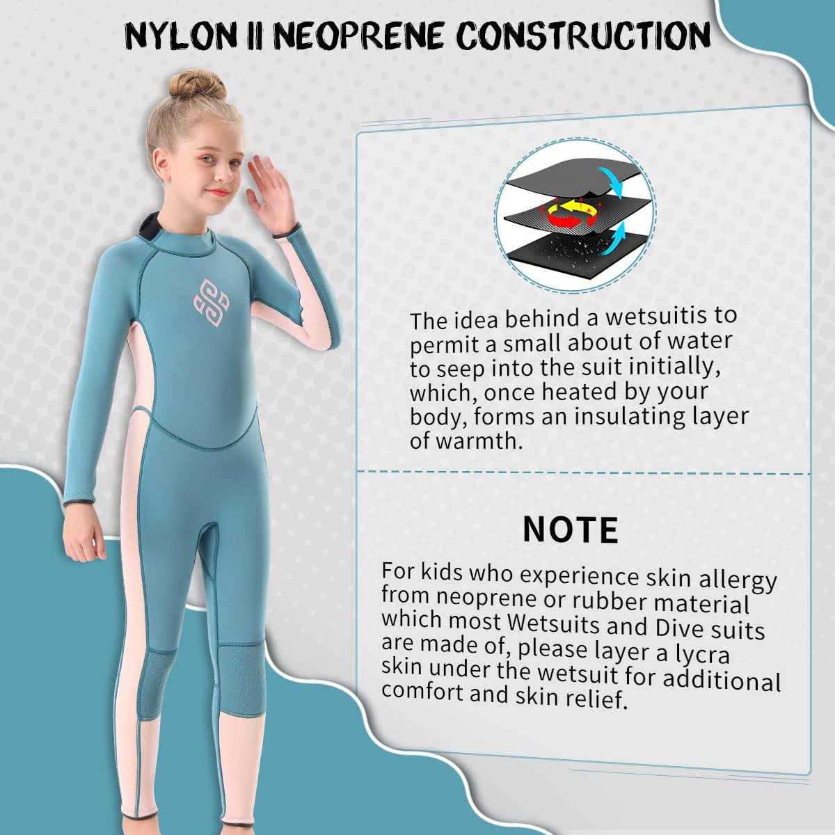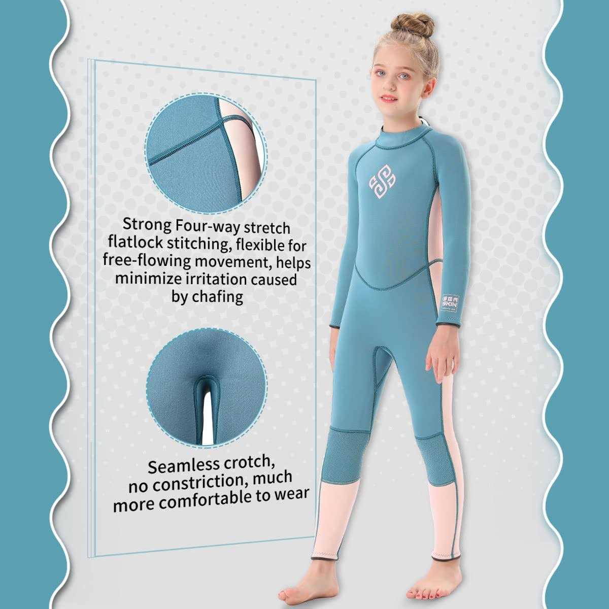 Kids Wetsuit Full Body, 3mm Neoprene Thermal Swimsuit Toddlers Girls Boys Back Zipper Keep Warm for Diving Surfing Swim Lessons (Girls Fullsuits, 12)