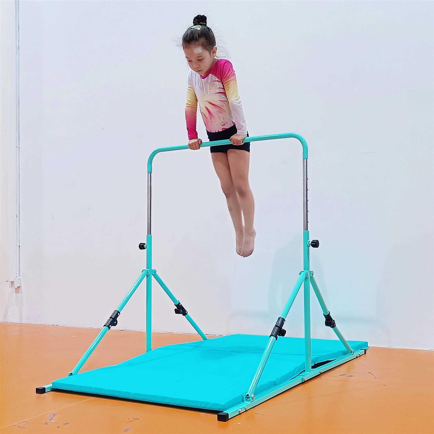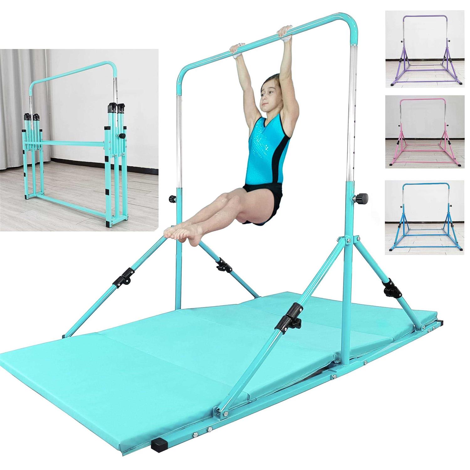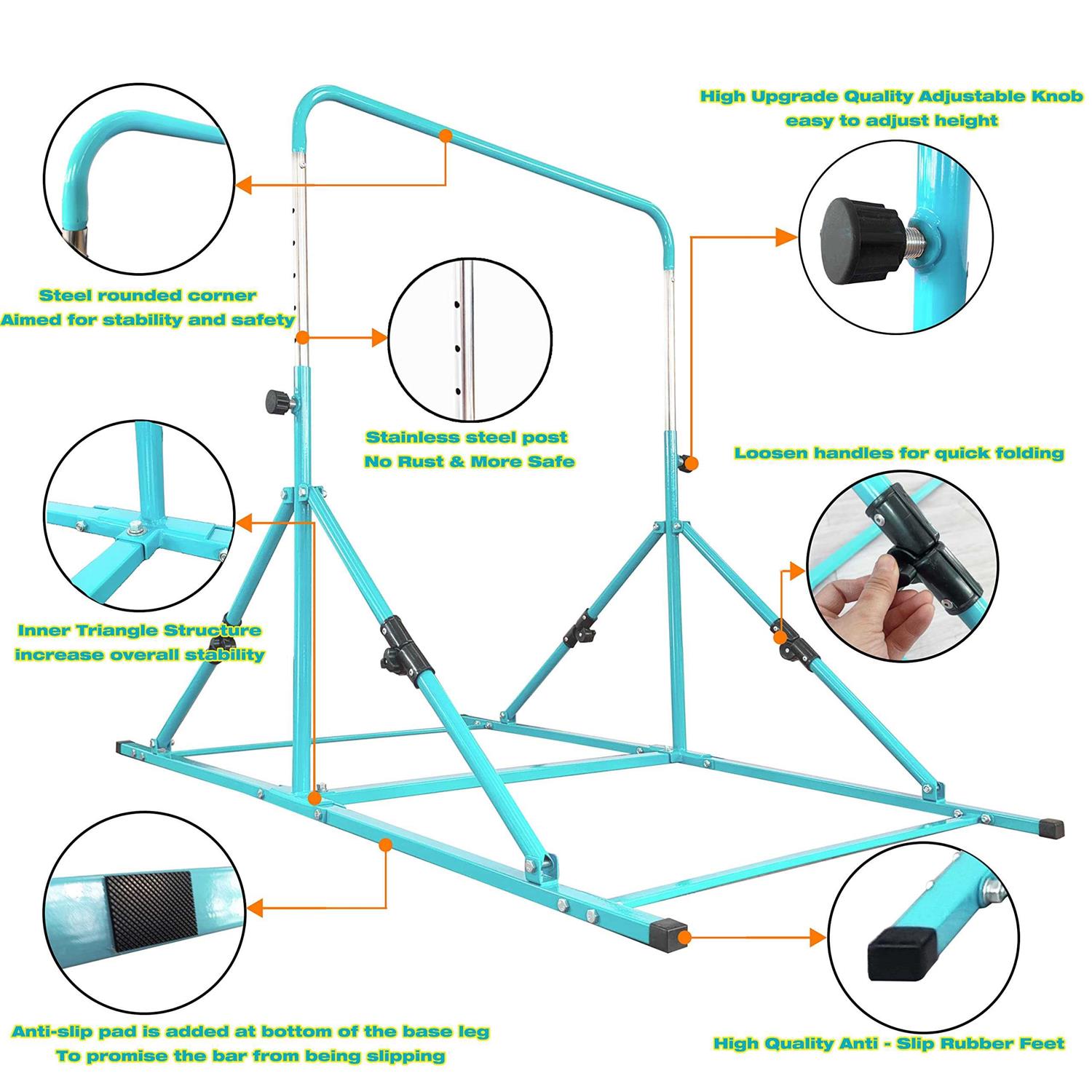 Seliyoo fodable Gymnastic kip bar, Gymnastics bar for Kids Ages 3-12,Adjustable Height from 33 to 49, Safety and Durable Triangle Base Gymnastics