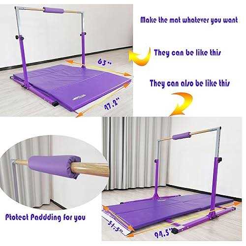 Seliyoo Foldable Gymnastic kip bar for Kids Ages 3-15 Gymnastics bar -Base Length 5FT/6FT, Adjustable Height,Gymnastics Equipment for Home and Gym