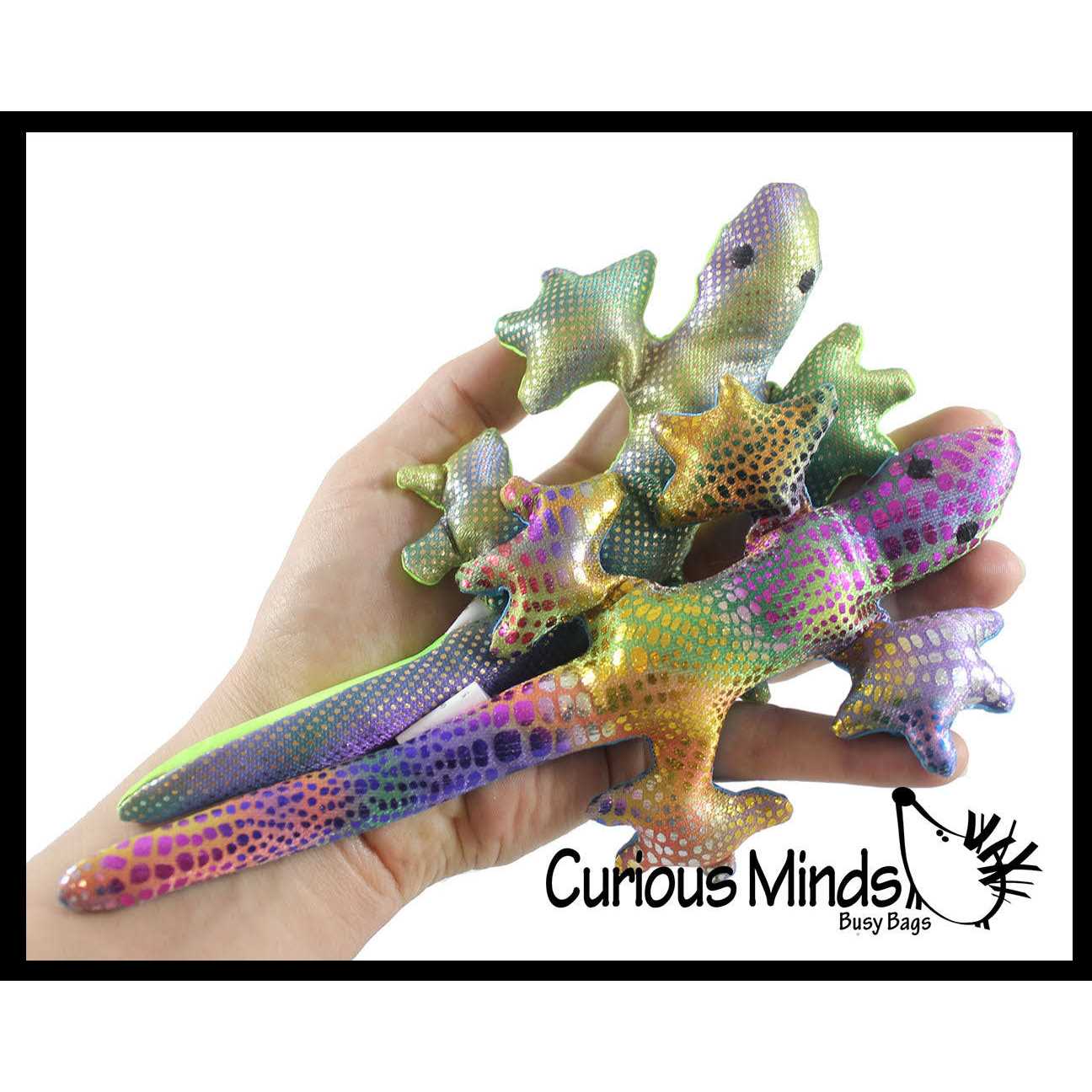 Includes 3 Sand-Filled Lizard Toys – 1 of Each Color These lizards are small plush animals that are filled with sand. They are weighted animals for their size making them good tiny little sensory toys that gives compression and self awareness in small areas. The lizards are wrapped in a shimmery glittery fabric and have such cute detailing making them adorable gifts or decorations on any desk. Since they are heavy and weighted, they make cute bean bags for themed toss games for parties. Lizards are 9″ long, 3″ wide, and 1″ thick. Fidgets are a self-regulation tool used with children who have a difficult time sitting still or focusing. Fidgets help promote focus and concentration, and keep the body (fingers) busy so they can still sit and focus! Fidget toys are also great for strengthening hand muscles and building fine motor and finger dexterity.