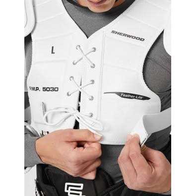 PE Caps covered with foam Single density foam chest with PE inserts Single density foam back with augmented spine protection Single density foam biceps with PE inserts Front lacing system Get a classic feel and look with the Sher-Wood 5030 HOF Senior Shoulder Pads featuring a single density foam back with augmented spine protection.