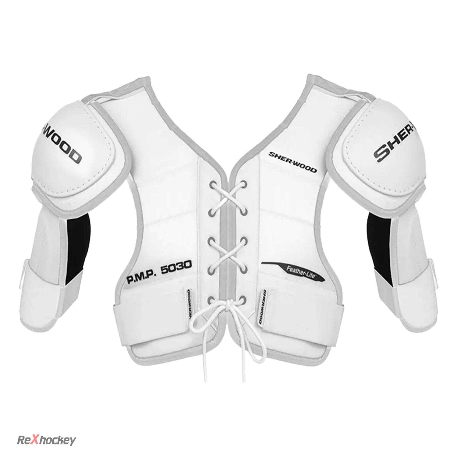 - Get a classic feel and look with the Sher-Wood 5030 HOF Senior Shoulder Pads featuring a single density foam back with augmented spine protection.