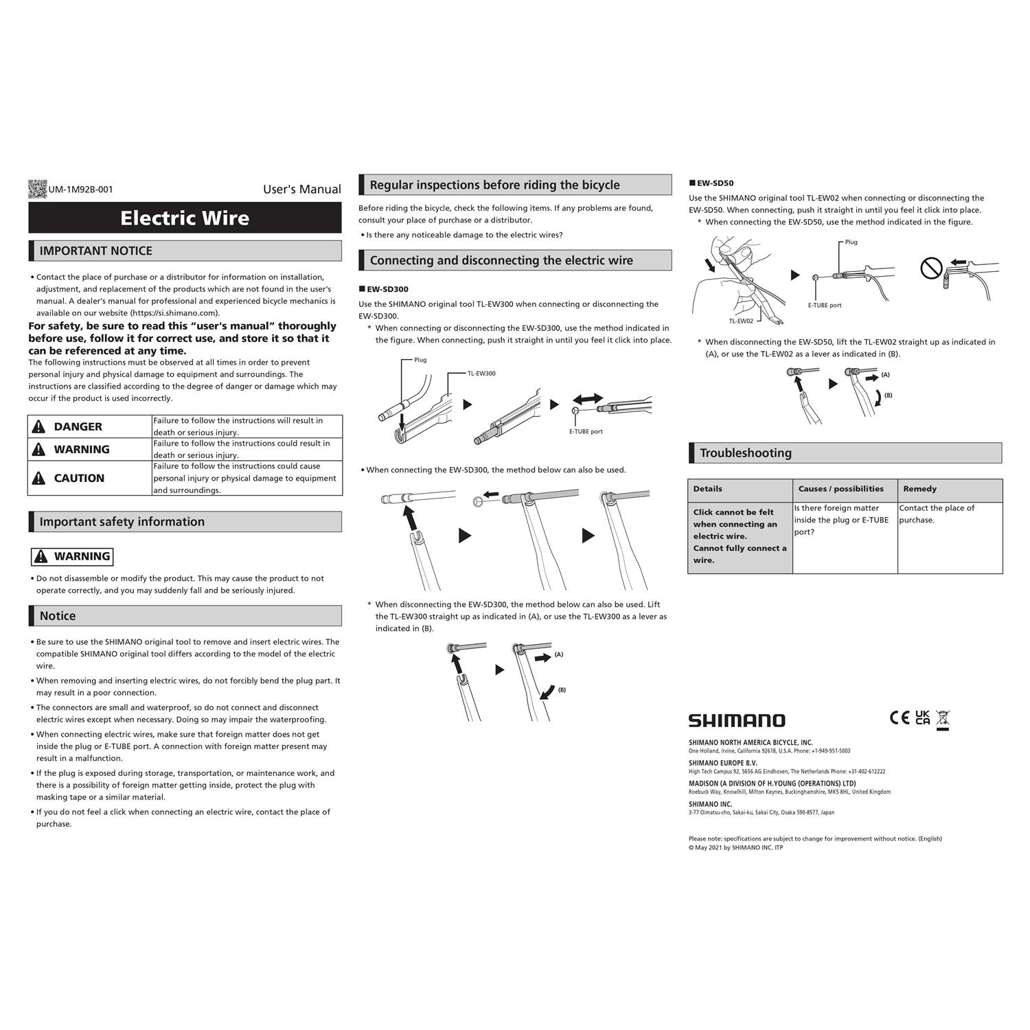 Bottom Brackets by SHIMANO. Details:With the release of Shimano’s updated Dura-Ace and Ultegra 12-speed Di2 drivetrains comes a new e-tube wire that’s based on technology developed for Shimano’s industry-leading e-bike systems. The SD300 wire is more compact and lightweight than previous e-tube wires, and it comes in a wide variety of lengths so you can connect your derailleurs to the Di2 battery regardless of frame size or shape.