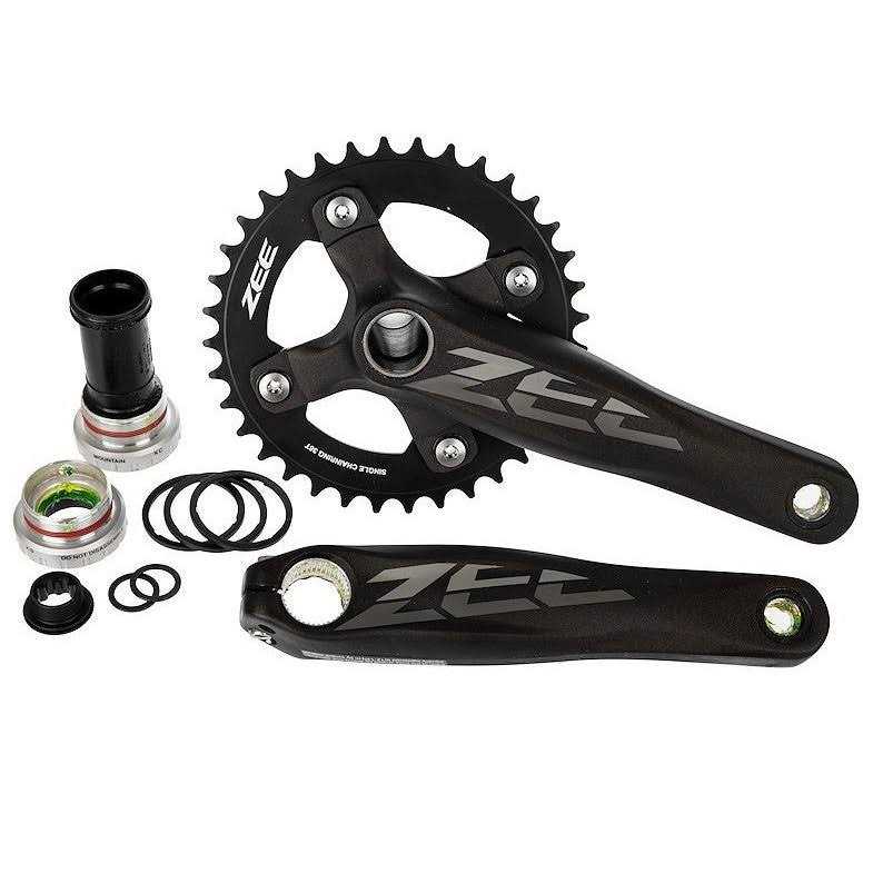 Shimano Zee M640 10 Speed Crankset Durable, reinforced crankset – the thick wall aluminum construction on the Zee two piece cranks and reinforced steel axle translate to additional confidence on the trail. With an axle 30% stronger than comparable trail cranks and smooth running, accurately aligned chain wheels, the Zee crank will perform reliably – run after run. The crank arm features outboard bearings and steel pedal inserts. Shimano introduces Zee, a new line of gravity components that are an ideal starting point for aggressive riders and racers. Zee is the gateway gravity component line that allows riders to get on board with Shimano s gravity program and experience premium new component technologies at a price they can afford. Please note, external Hollowtech II Bottom Bracket is included.